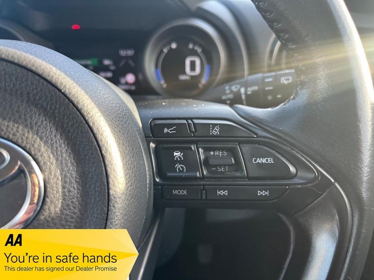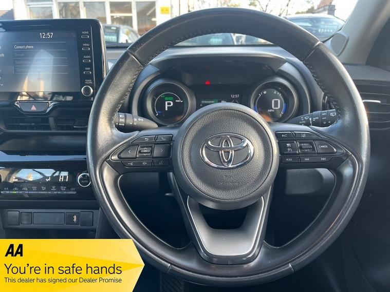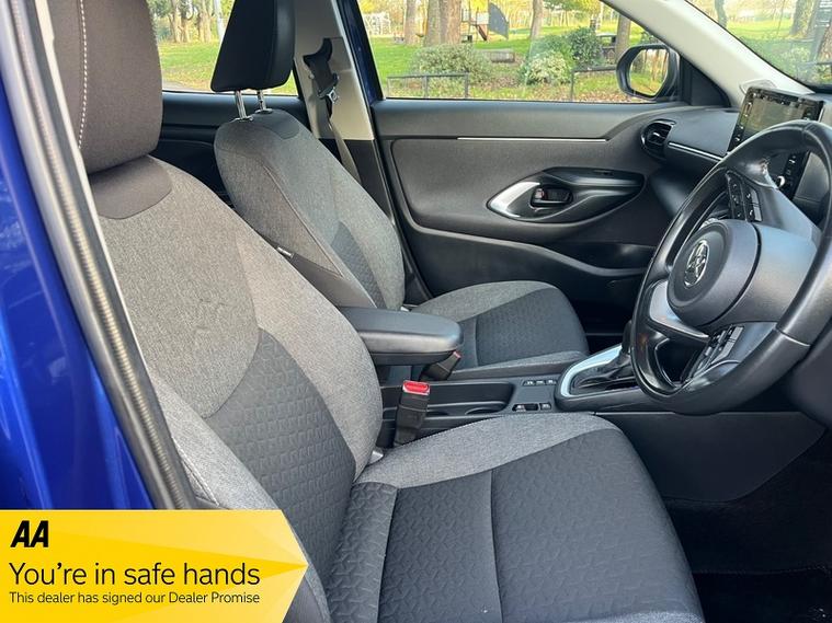 This 2022 Toyota Yaris Cross VVT-h Icon is a superb example, having had only one owner since new. This stylish compact SUV boasts a 1.5 litre petrol hybrid engine, meeting Euro 6 emission standards. It comes equipped with Smart Entry and Push Button Start for effortless access and ignition, along with automatic headlights that adjust to lighting conditions. For convenience and safety, it features an intelligent adaptive cruise control system and a reversing camera to aid parking. Stay connected on the go with its integrated Bluetooth connectivity.