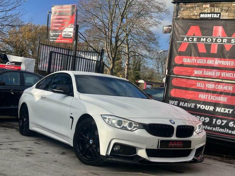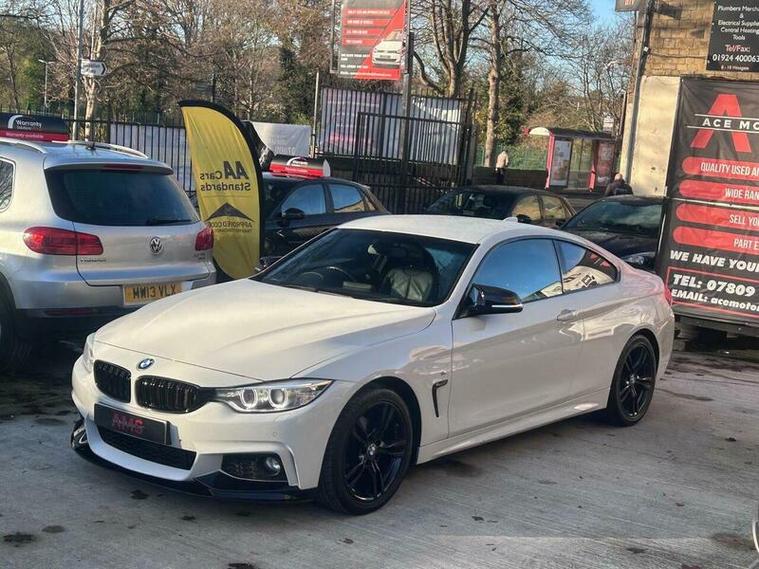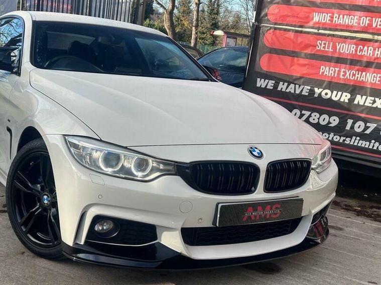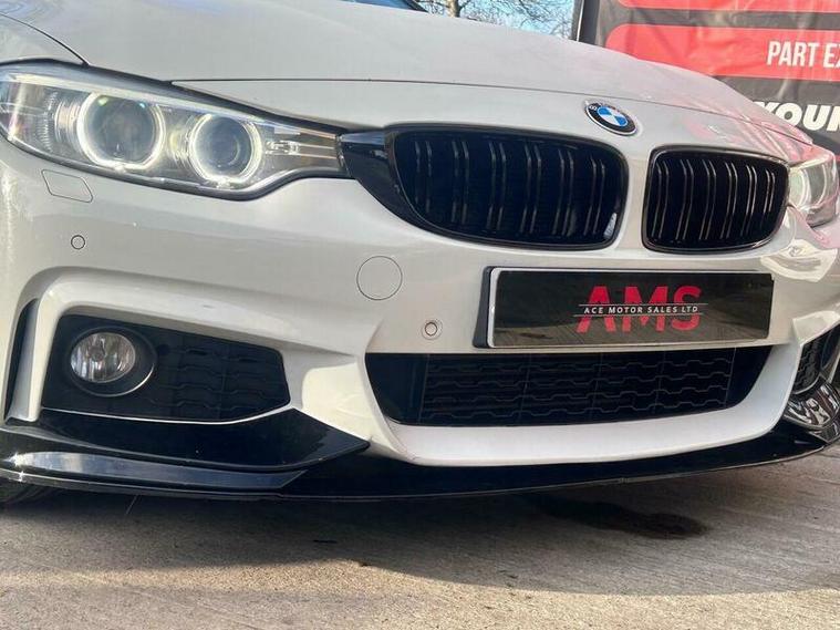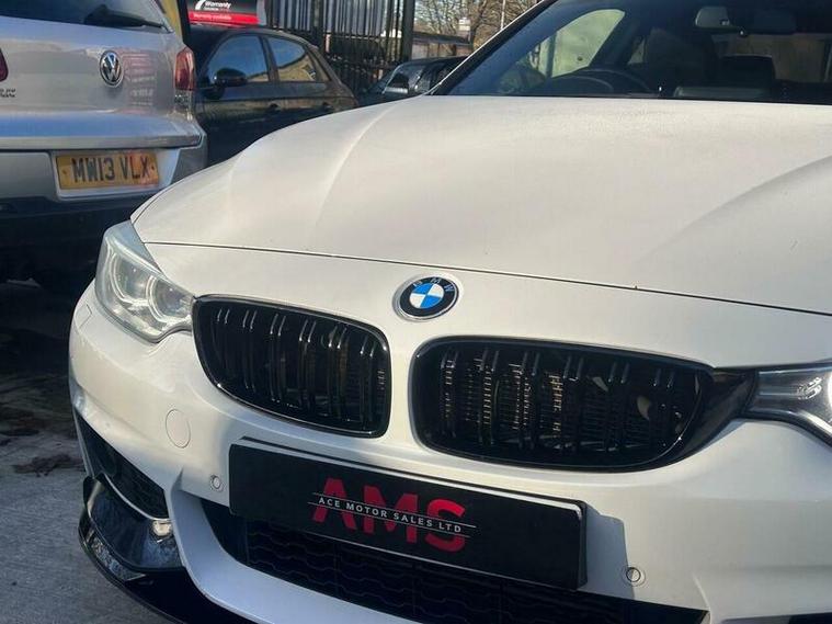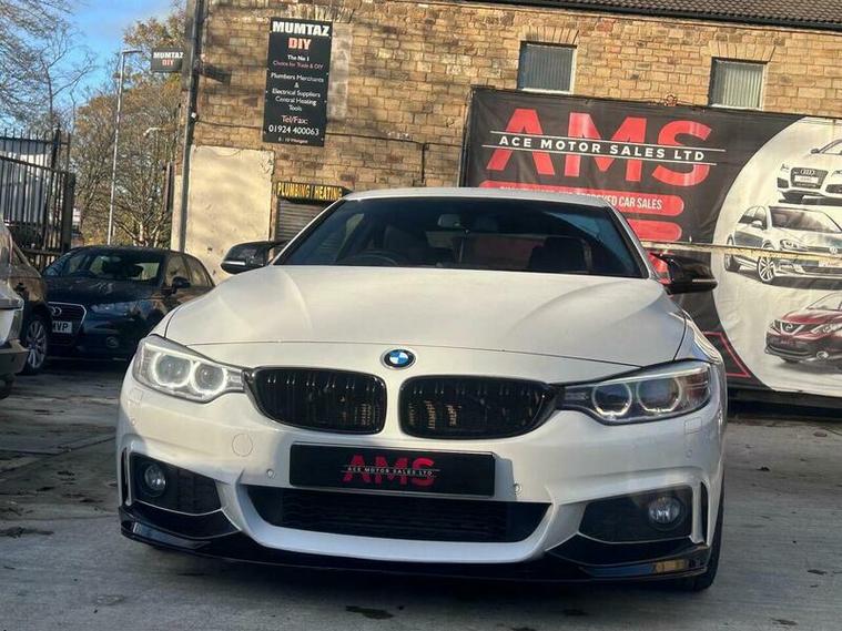 Ace Motor Sales Ltd are proud to offer this beautiful BMW 420D for sale. The vehicle is finished in metallic white accompanied by the gloss black M Sport alloy wheels and the stunning Dakota black leather interior. Drives like a dream with an ample amount of power, comfort and performance. The car looks amazing with the M Performance body kit all around the car including the front splitter, rear diffuser, side skirts and boot lid spoiler. Great condition inside and out. Very well maintained example with BMW on board service history. HPI CLEAR. X2 Keys.