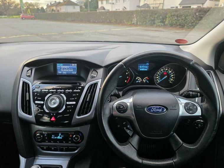 This 2013 Ford Focus T Titanium presents an exceptional ownership proposition with only two previous owners and a clear vehicle history check. This well maintained example boasts a 1.0 litre petrol engine and has covered a modest 72, 000 miles, which is low for its age. Inside, you will find a comfortable cabin featuring dual zone electronic automatic climate control and a premium Sony DAB audio system complete with Bluetooth handsfree and voice control for seamless connectivity. Automatic headlights ensure optimal visibility in varying conditions.