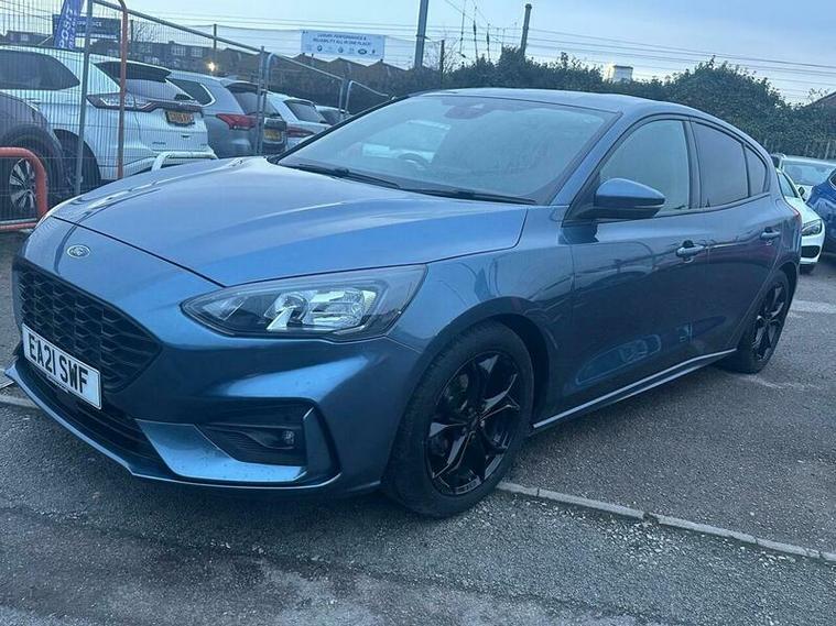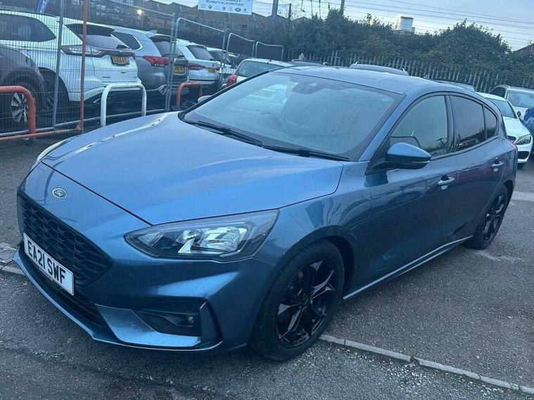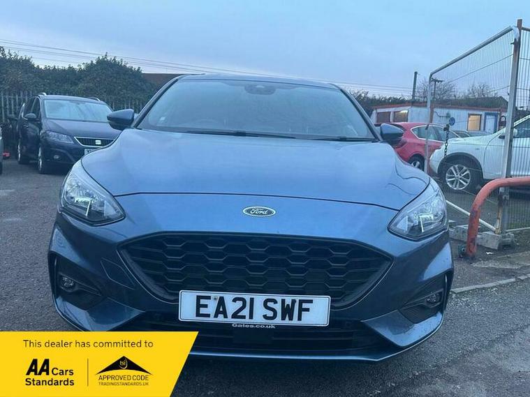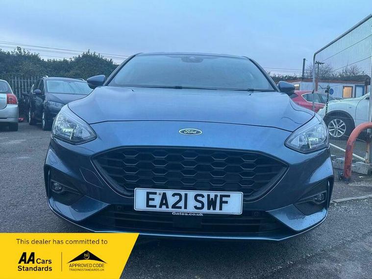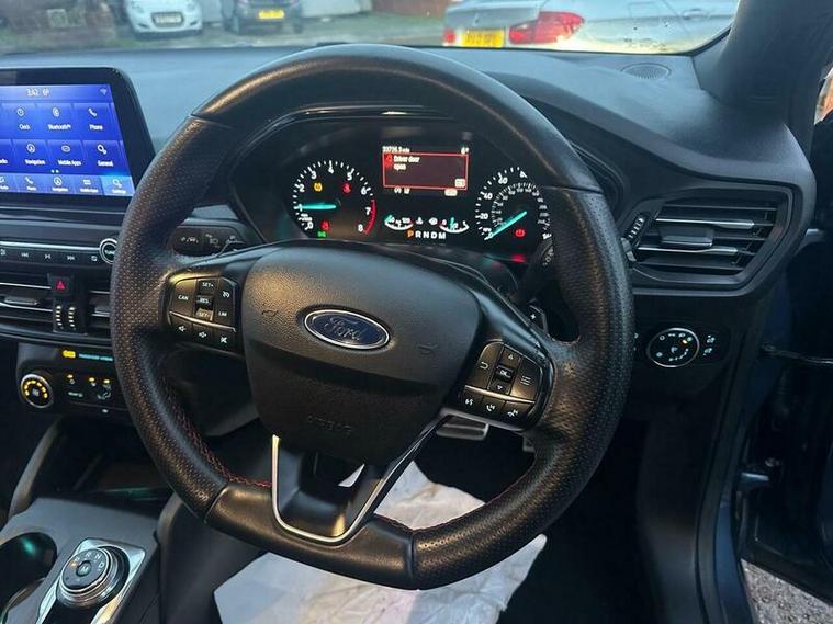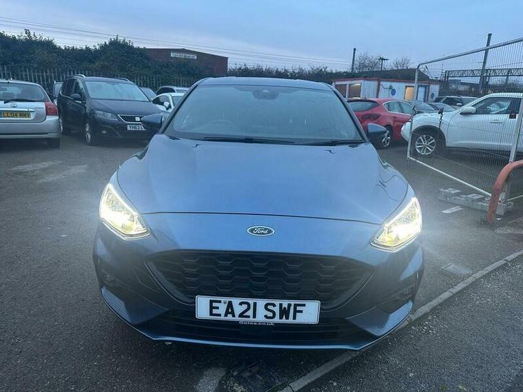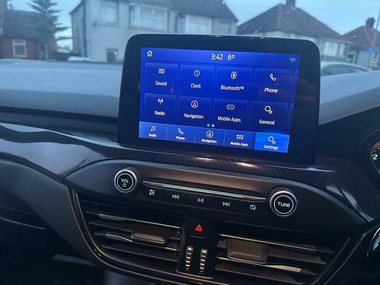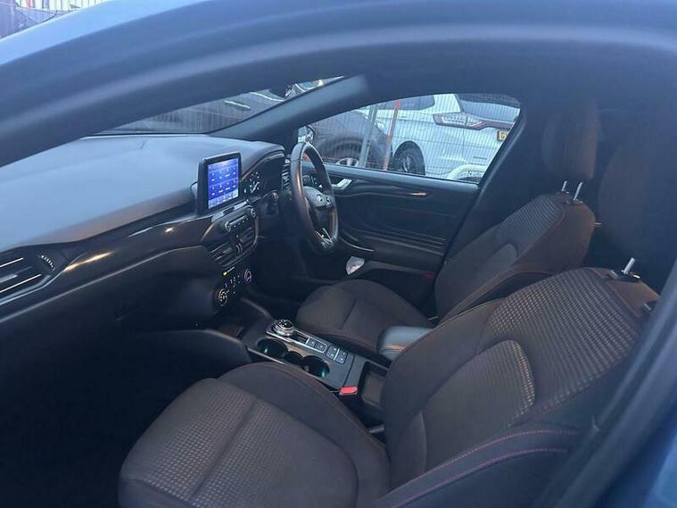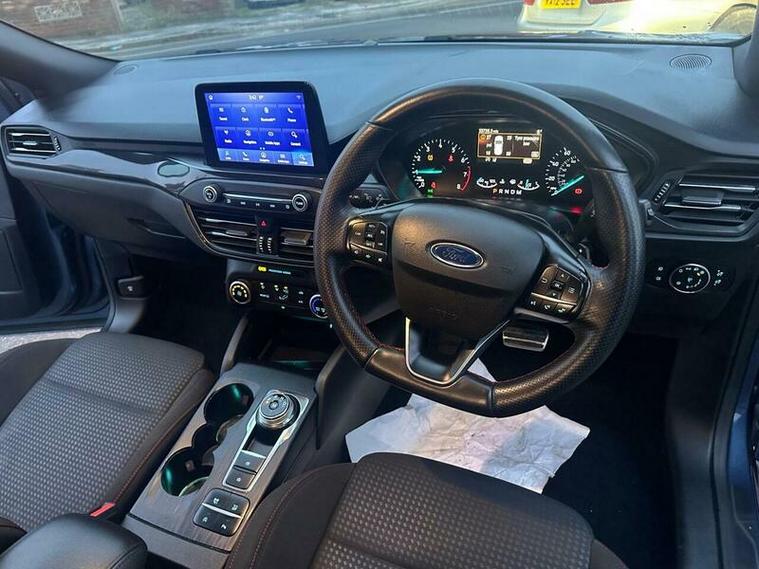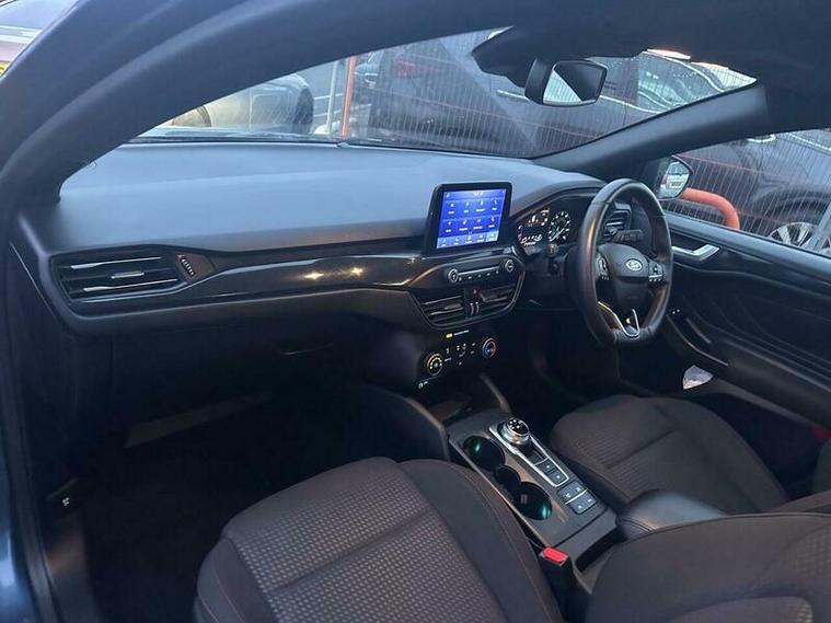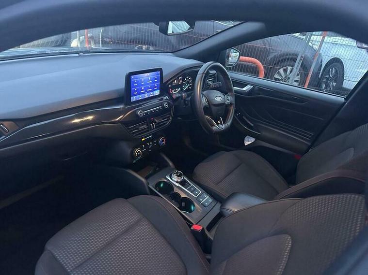 This 2021 Ford Focus ST-Line T presents an exceptional opportunity with remarkably low mileage for its age, having covered just 33, 700 miles. This Euro 6 compliant 1.0 litre petrol model boasts the sporty ST Line trim, offering a refined driving experience. Inside, you'll find a premium centre console featuring a short sliding armrest, an open cup holder, and convenient 12V power points front and rear. The E shifter rotary bezel gearshift knob adds a modern touch, while manual air conditioning ensures comfort. For connectivity and entertainment, the Ford SYNC system with an 8 inch TFT touchscreen is included, supporting both Android Auto and Apple CarPlay. Automatic headlights further enhance convenience and safety.