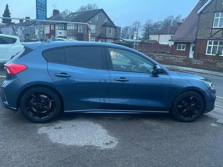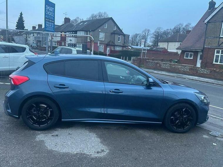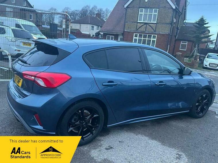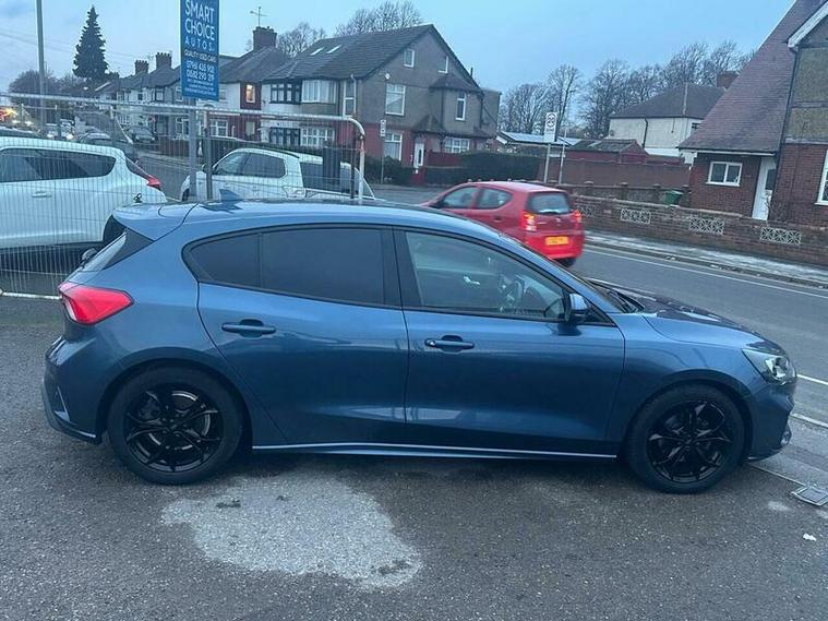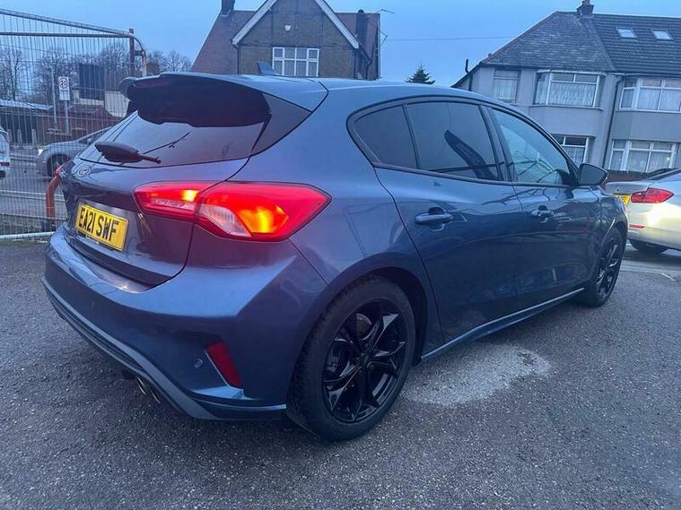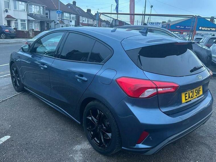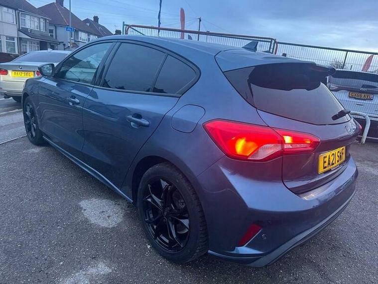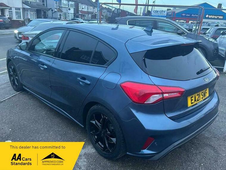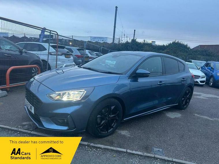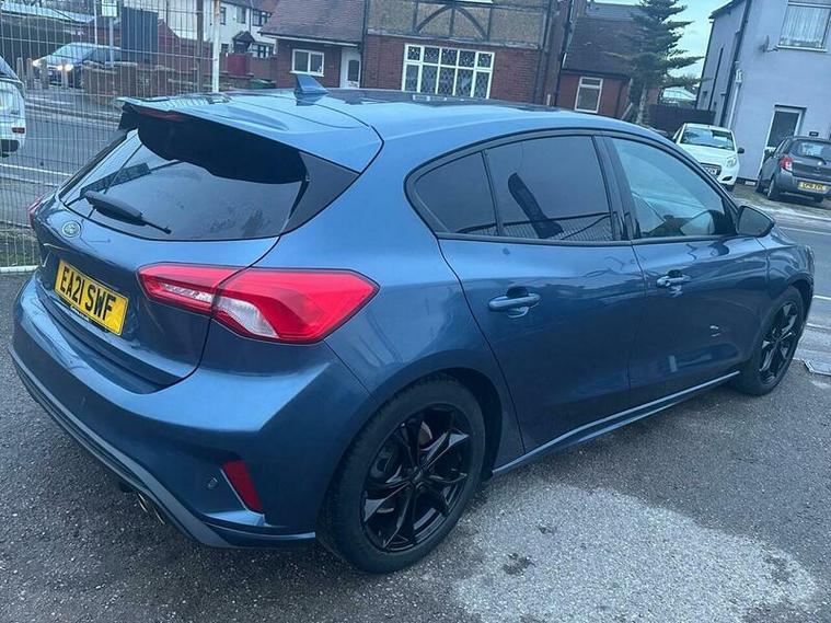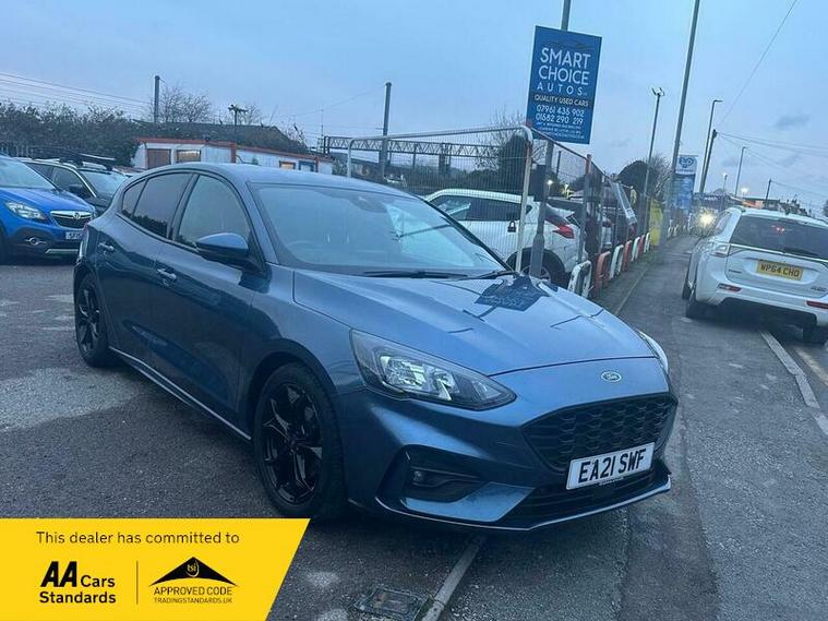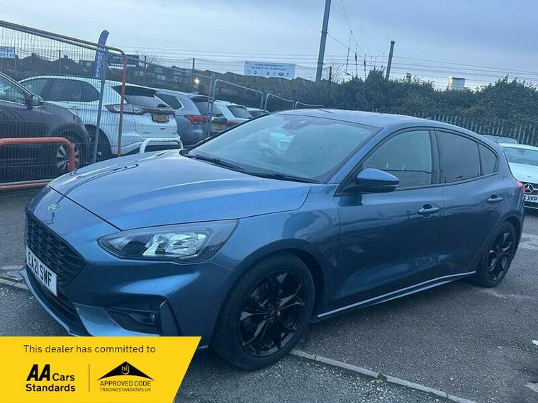 This 2021 Ford Focus ST-Line T presents an exceptional opportunity with remarkably low mileage for its age, having covered just 33, 700 miles. This Euro 6 compliant 1.0 litre petrol model boasts the sporty ST Line trim, offering a refined driving experience. Inside, you'll find a premium centre console featuring a short sliding armrest, an open cup holder, and convenient 12V power points front and rear. The E shifter rotary bezel gearshift knob adds a modern touch, while manual air conditioning ensures comfort. For connectivity and entertainment, the Ford SYNC system with an 8 inch TFT touchscreen is included, supporting both Android Auto and Apple CarPlay. Automatic headlights further enhance convenience and safety.