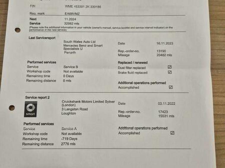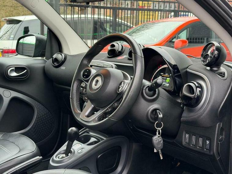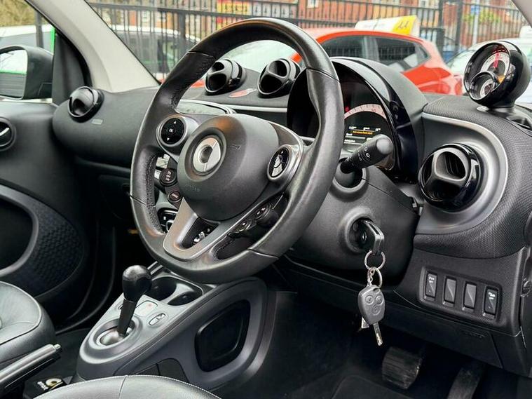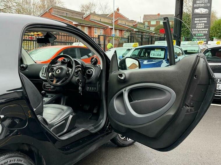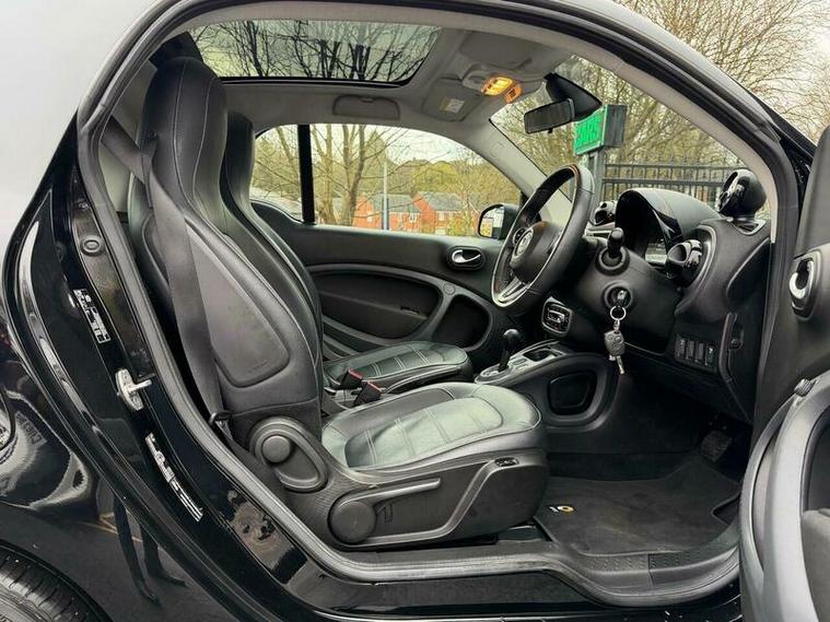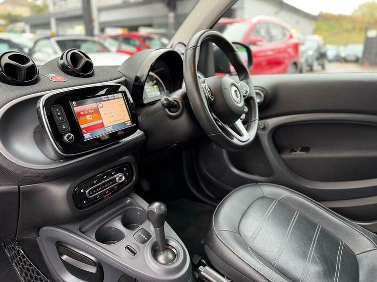 Basford motors ltd delighted to offer this stunning TSmart fortwo 17.6kWh Prime (Premium) Auto 2dr (22kW Charger This 2018 Smart Fortwo Prime (Premium) Electric boasts a full service history, with its last service completed on 27th November 2025 at 28, 076 miles hD brake pads ad discs, ensuring excellent provenance. This electric model features an 18 kWh battery offering a maximum range of 96 miles when new. Charging at home with a 7kW charger takes approximately 3 hours and 46 minutes. Notable features include heated seats for both driver and front passenger, rear parking assistance, a panoramic roof with sun protection, and the Smart Media System with Bluetooth connectivity. 2 keys