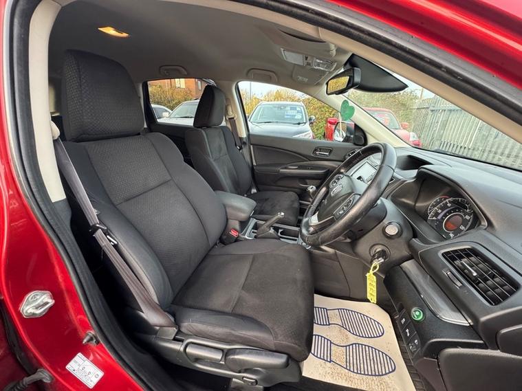 2016 (66) Honda CR-V 1.6 i-DTEC 160 SE Plus 5dr in Red. Full Service History, 2 keys and 3 previous owners. Runs and Drives brilliantly, the 1.6 i-DTEC Honda diesel engine provides a fantastic blend of reliability, economy (57+ MPG combined), practicality, safety and performance (158 BHP with 350 NM of torque) making this a great all round vehicle. Passion red pearl which is a great colour and gives the Honda CR-V a striking and stylish appearance. 4WD model making this example a practical choice in all seasons. Good specification with Cruise control, Touch screen Infotainment, Reversing camera, DAB Radio, Bluetooth connectivity, Automatic lights/wipers, Tow with electrics, Dual climate control, 17 inch alloy wheels and more. 12 Months MOT, Service and 6 Months Warranty with the sale. ULEZ compliant Euro 6 Diesel. Overall condition very good however there are a couple of very minor exterior imperfections which we have factored into the price. A really nice example, finance available.