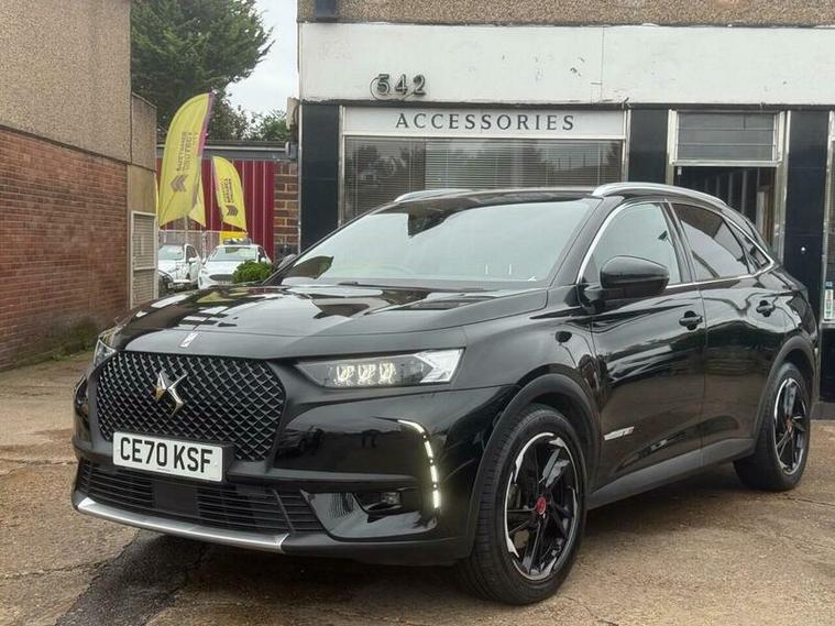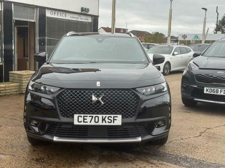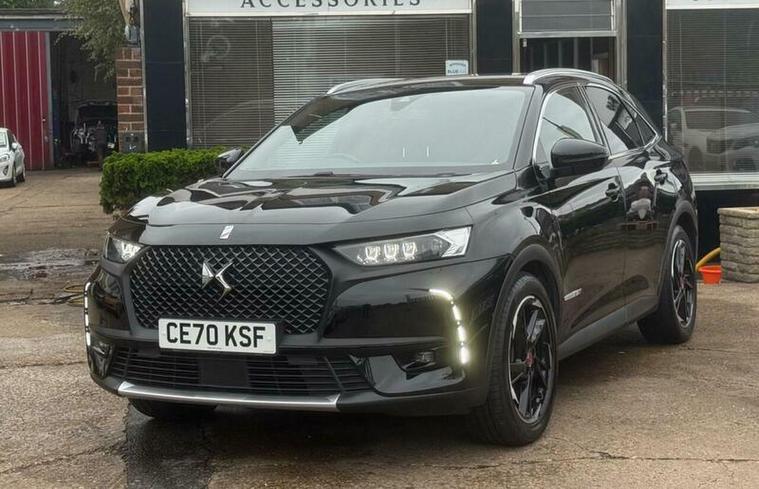 Discover this 2020 DS 7 CROSSBACK E-TENSE Performance Line, a sophisticated four wheel drive plug in hybrid that combines performance with efficiency. This Euro 6 compliant model boasts a 1.6 litre petrol engine and features striking 19 inch London diamond cut alloy wheels. Inside, you'll find a premium feel with a leather gear knob and the distinctive DS Inspiration badge on the front doors. It also comes equipped with a domestic charging cable, ready for your hybrid journeys.