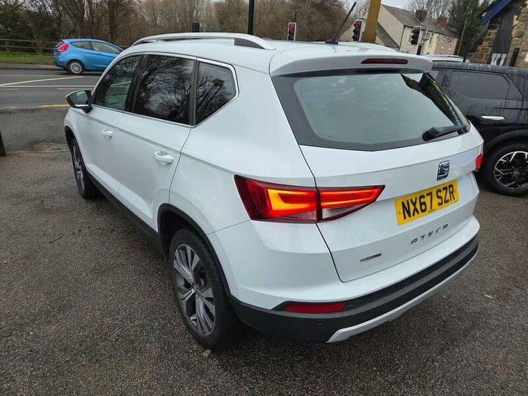 This 2017 SEAT Ateca EcoTSI SE Technology is presented with a partial service history, offering peace of mind with a 12 month MOT provided on purchase. This Euro 6 compliant 1.4 litre petrol model boasts a smooth drive and comes equipped with desirable features including full LED headlights for excellent visibility, rear parking sensors to aid manoeuvring, and dual zone climate control to ensure comfort for all occupants.