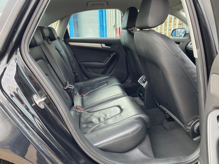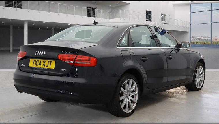 BRILLIANT EXAMPLE OF THE AUDI A4 SE TECHNIK 2.0 TDI 177 BHP ++ ONLY 1 OWNER FROM NEW ++ GOOD SERVICE HISTORY, TIMING BELT KIT & WATER PUMP DONE, FINISHED IN METALLIC BLACK PAINT, GREAT SPECIFICATIONS, LEATHER SEATS, CRUISE CONTROL, SAT NAV, DAB RADIO - SUPPLIED WITH 3 MONTHS WARRANTY & 12 MONTHS AA BREAKDOWN ++ 2014 (14) Audi A4 Avant Se Technik 2.0 TDI (s/s) Saloon 6 Spd manual. WARRANTED MILES covered 119k miles. Current MOT Till June 2026, RECENT SERVICE along with brand new front brake pads and discs fitted. Brilliant SPECIFICATION: Multi Spoke exclusive alloys, Front sport seats, Electrically adjustable 4-way lumbar support, Central arm rest, Multifunction steering wheel, Sat Nav, Bluetooth, DAB Radio, Cruise control, Front And Rear parking sensors, Headlight washers, Light and rain sensor, Auto dim rear view mirrors, Deluxe 3 zone climate control, Audi music interface, Electric windows, Electric mirrors, Privacy Glass. PRESENTED with 1 remote keys, v5, service history, owners handbook, HPI Clear.