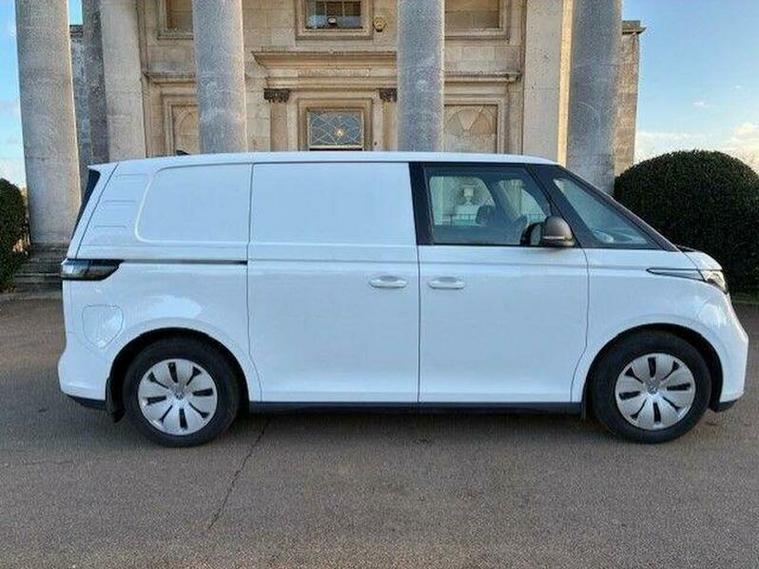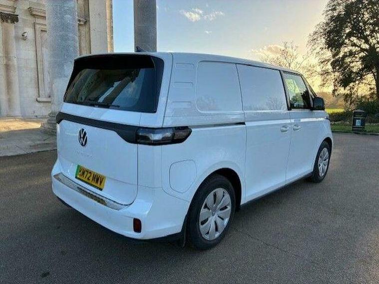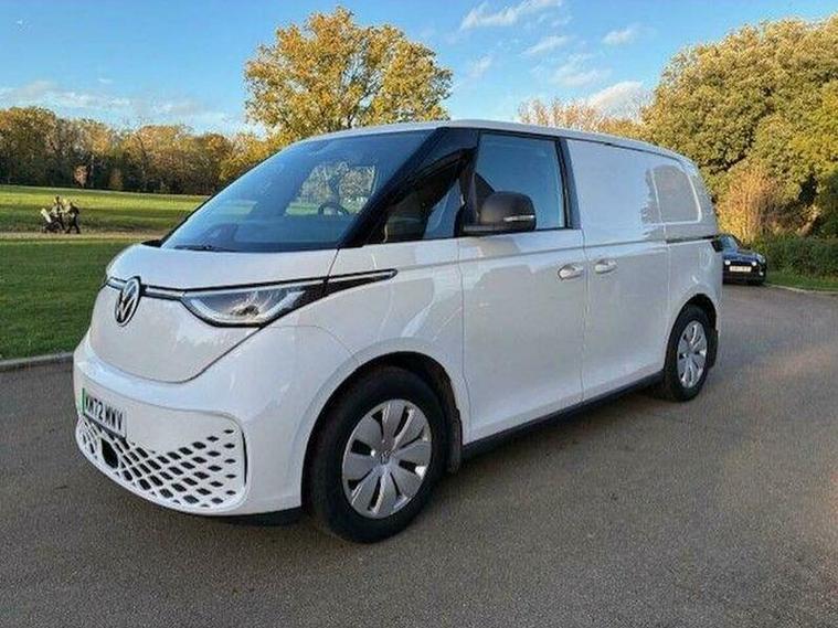 This 2022 Volkswagen ID. Buzz Cargo Pro Commerce presents an exceptional opportunity with its remarkably low mileage of just 10, 000 miles. As an electric vehicle, this Pro Commerce derivative offers a practical and modern solution for your business needs. It boasts a substantial 82 kWh battery capacity, providing a maximum range of 256 miles when new, ensuring you can cover significant distances between charges. For convenience, a full charge at home using a 7kW charger takes approximately 35 hours, while rapid public charging can replenish the battery from empty to 80% in as little as 30 minutes. This ID. Buzz Cargo comes equipped with We Connect Plus for three years, including air conditioning, and a 1 Zone Climatronic system for climate control. Stay connected and entertained with App Connect featuring wireless Apple CarPlay and Android Auto. The vehicle also benefits from LED headlights for enhanced visibility and a heated driver's seat for added comfort.