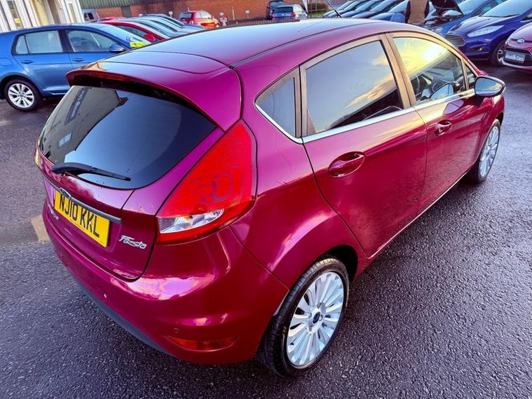 ABSOLUTE CARS have this 5 Door Ford Fiesta 1.4 Titanium in Pearlescent Hot Magenta with Alloys. Call in for a test drive, finance arranged & part exchange considered., Next MOT due 27/11/2026, Last serviced on 21/11/2025 at 65, 582 miles, Full service history, Grey Cloth interior, 5 seats, Red, 4 owners, Upgrades - Parking Sensor - Rear, Unique Pearlescent Paint - Hot Magenta, Standard Features - 16in - Alloy Wheels, 2 Front Speakers, ATC Air Conditioning, Airbag - Driver, Airbag - Driver Seat Head Thorax, Airbag - Front Passenger, Airbag - Front Side, Airbag - Knee Driver, Anti-Lock Brakes (ABS) and Emergency Brake Distribution (EBD), Auto Headlamps, Auto Wipers, Auto Wipers inc. Auto Headlamps, Body Colour Rear Spoiler, Bumpers - Body Colour, Carpet Mats, Centre Rear Seat Belt, Cruise Control, Door Mirrors - Electrically - Operated and Heated, Power Foldable, Driver Seat Height Adjust, Electronic Brake Force Distribution (EBD), Front Fog Lights, Head Restraints Front/Rear, Heated Rear Screen, Immobiliser, Leather Gearknob, Leather Steering Wheel, Map Reading Lights/Aesthetic Lighting, Perimeter Alarm, Power - Assisted Steering, Premier Alarm, Privacy Glass, QuickClear Heated Windscreen, Quickclear Heated Windscreen, Radio/CD, MP3 Compatible with 2-Line Display and Aux In, Reach and Rake Steering Wheel, Rear Wash/Wipe, Remote Control for Audio, Remote Double Locking, Second Remote Ignition Key, Split Rear Seats, Third Brake Light, Trip Computer, Tyre Mobility Kit, Upholstery Cloth, Windows - Power Front One-Shot, AS WE ARE AN AA CARS DEALER THIS VEHICLE COMES WITH 12 MONTHS AA BREAKDOWN COVER.