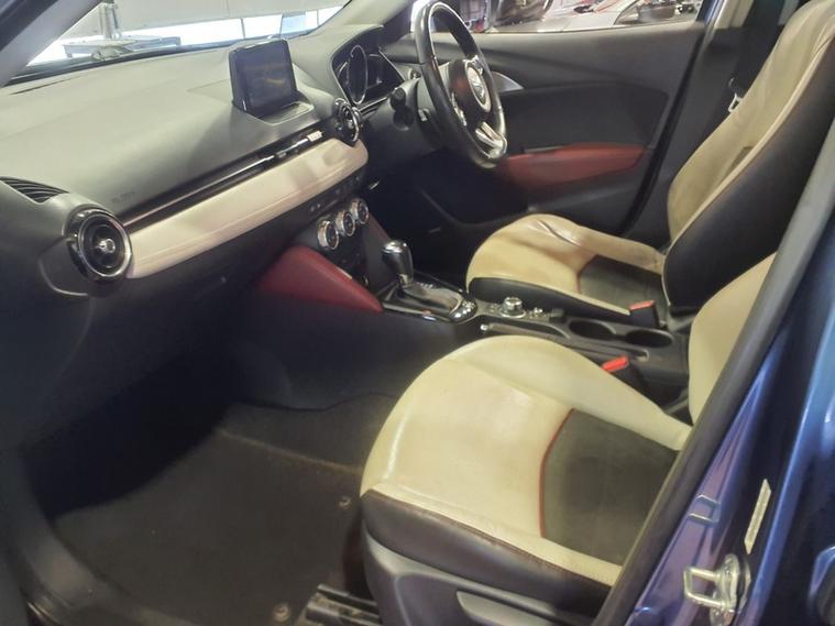 This 2018 Mazda CX-3 SKYACTIV-G Sport Nav offers an exceptional blend of style and practicality, making it a standout choice. Powered by a responsive 2.0 litre petrol engine and meeting Euro 6 emissions standards, this Sport Nav model is equipped with a comprehensive Safety Pack, including Blind Spot Assistance, to enhance your driving confidence. Inside, you'll find luxurious Leather Lux Suede upholstery featuring a sophisticated half stone leather and half black suede combination with striking red piping. Comfort is further assured with front heated seats, while the LED headlights with daytime running lights and auto levelling ensure excellent visibility. Parking is made easier with the integrated reversing camera.