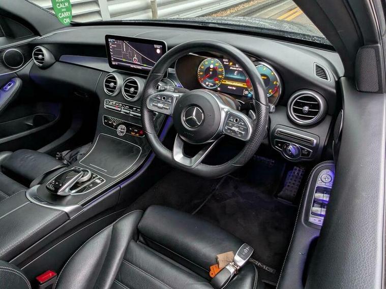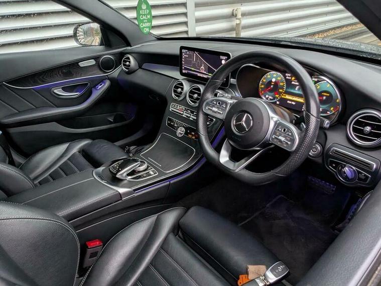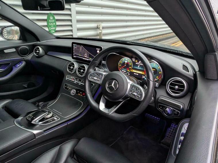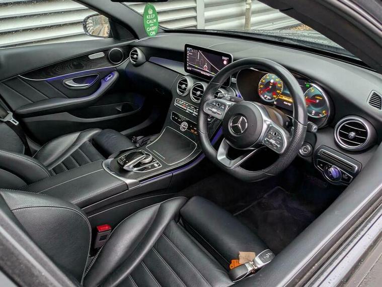 This 2019 Mercedes Benz C Class C300d AMG Line (Premium) boasts exceptionally low mileage for its age, having covered just 49, 000 miles. This Euro 6 compliant model features a powerful 2.0L diesel engine and is presented in the desirable AMG Line trim. Inside, you'll find luxurious Black Leather upholstery, heated front seats for added comfort, and THERMATIC automatic climate control for a consistently pleasant cabin temperature. The Premium Package enhances the driving experience with LED headlights and convenient wireless phone charging.