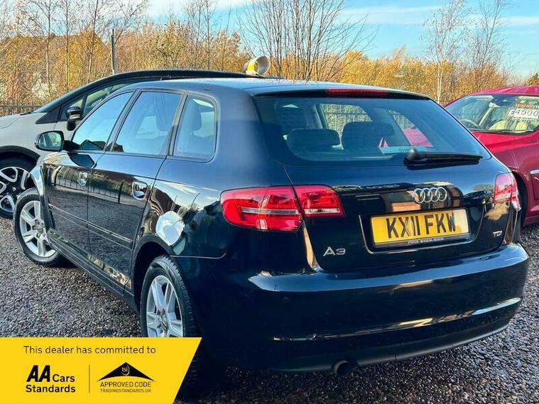 Audi A3 2.0 TDI SE Sportback (s/s) 5dr in very good condition and comes with service history. Fresh service and fresh MOT. Engine and gearbox are running in very good order, very good interior/ exterior condition. Very good tyres condition.2 Keys. HPI is clear. £35 Road Tax. 12 Months free AA roadside breakdown cover . Parking sensors, removable tow bar, spare wheel. Nationwide delivery service is available.