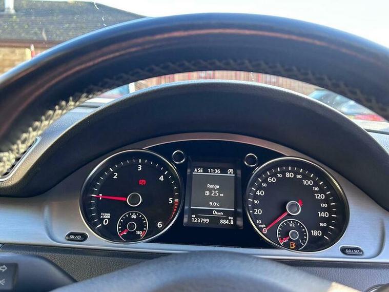 Specification consists of: Black leather heated seats, Bi-Xenon headlights, 18 inch Interlagos alloy wheels, Cruise Control, Front & Rear parking sensors, VW media system, SATNAV, DAB, Bluetooth, Multifunctional steering wheel, Convenience pack, Ambient lighting. And the list goes on!