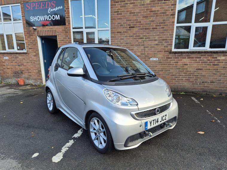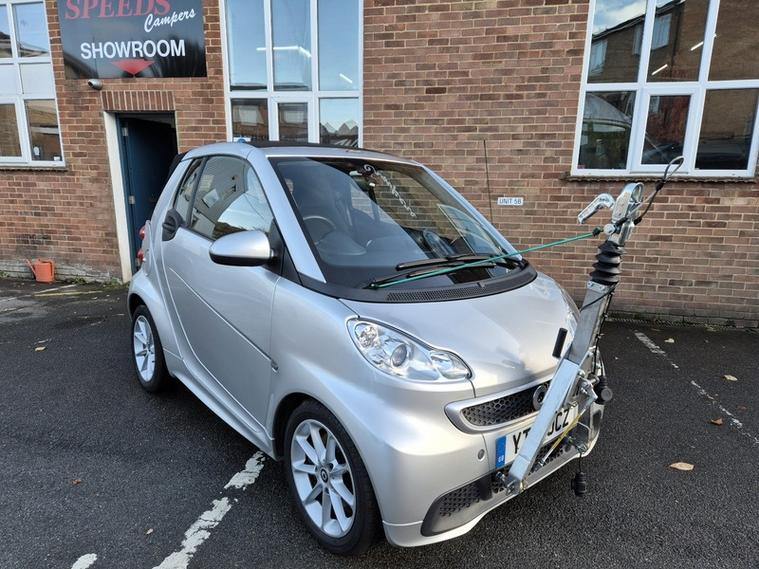 This stylish and compact Smart ForTwo Passion Convertible is the ideal motorhome tow car, complete with a braked A-Frame and a desirable automatic SoftTouch gearbox. With low running costs, excellent manoeuvrability and a full convertible roof, it?s perfect for both everyday use and motorhome touring.