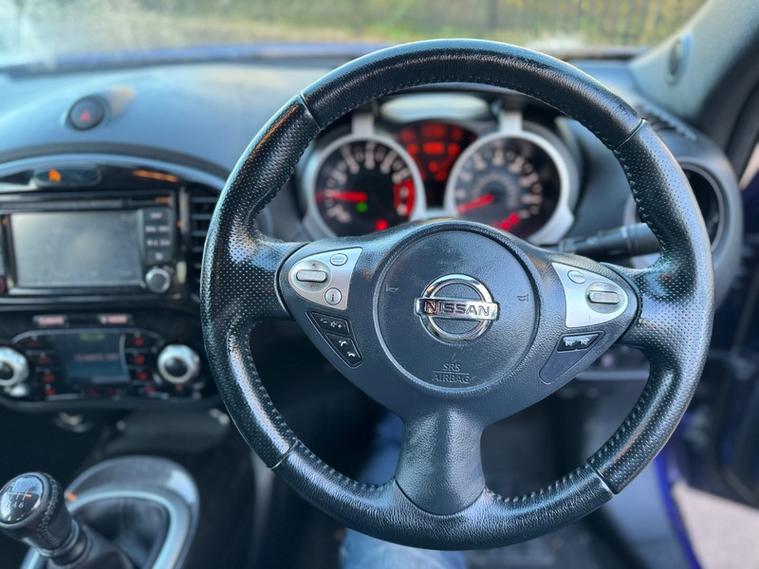 This 2015 Nissan Juke DIG T N Connecta offers excellent value with its low insurance group and impressive 50 mpg fuel economy. This Euro 6 compliant model features a 1.2 litre petrol engine and comes with the N Connecta trim. For your convenience and safety, it includes a Safety Pack with Blind Spot Assistance and a 360 degree camera parking assistance system, alongside a colour reversing camera. Enjoy seamless connectivity with Bluetooth integration for your telephone and effortless journeys thanks to automatic climate control with a pollen filter and keyless entry with a push button start., , The Nissan Juke DIG T N Connecta stands out from other vehicles in its class due to its thoughtful features and economical running costs. Its low CO2 emissions are a testament to its efficient design, contributing to lower environmental impact. Combined with its low insurance group and exceptional fuel economy of 50 mpg, this Juke is designed to be kind to your wallet, making it a sensible choice for everyday driving., 3 months warranty, 12 months MOT, Last serviced on 01/12/2025, Full service history, Interior - Clean Condition, Tyre condition Good, 5 seats, Blue, 3 owners, Upgrades - Safety Pack, Standard Features - 12V Socket - Front, 17in Alloy Wheels - Sport, 2 Speed Wiper with Variable Intermittent, 3 Adjustable Rear Head Restraints, 60-40 Split Rear Folding Seats, AUX Socket for MP3 Player, Airbag - Driver, Airbag - Front Passenger, Airbags - Curtain, Airbags - Side, Automatic Climate Control with Pollen Filter, Automatic Lights and Wipers, Black Headliner, Body Coloured Handles, Body-Coloured Door Mirrors with LED Indicators, Boot Capacity with Flexi-Floor Board, Chrome Interior Door Handles, Colour Reversing Camera, Cruise Control with Speed Limiter, DAB and Internet Radio with 6 Speakers, Drive Computer with Temperature Gauge, ESP ABS EBD and Brake Assist, Electric Folding and Heated Door Mirrors, Engine Immobiliser, Front Armrest, Front Cupholders x2, Front Door Pockets with Drinks Bottle Holders, Front Fog Lights, Front Map Reading Lights, Front Seat Belt Height Adjustment, Front Seat Belts with Load Limiter and Pretensioners, Front and Rear Electric Windows, Gear Shift Indicator, Glovebox, Height Adjustable Driver Seat, ISOFIX Child Seat Anchoring Points, Intelligent Key with Start Push Button, LED Signature Daytime Running Lights, Leather Steering Wheel and Gear Knob, Nissan Dynamic Control System, NissanConnect, Passenger Airbag Cut-Off Switch, Power Assisted Steering - Speed Sensitive, Puncture Repair Kit, Rear Door Child Locks, Rear Privacy Glass, Rear Tonneau Cover Integrated into Tailgate, Rear Wiper with Intermittent, Steering Wheel Mounted Audio Controls, TPMS - Tyre Pressure Monitoring System, Telephone - Bluetooth Integration, Tilt Adjustable Steering Wheel, Traction Control, USB Port, PLEASE USE REGISTRATION NUMBER AS REFERENCE