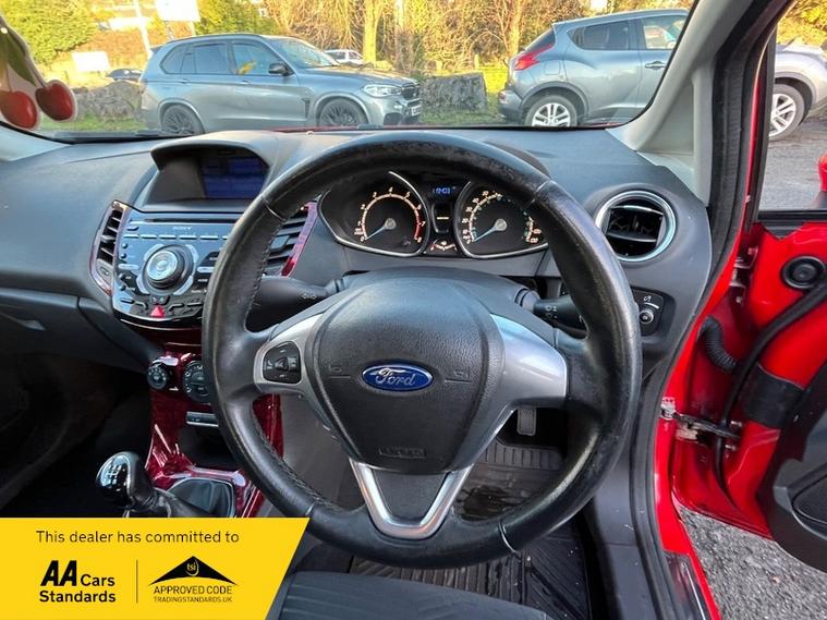 **2013 Ford Fiesta Zetec Finished In Bright Red**Full service history 10 service stamps and a massive folder full of paperwork**New Mot**Climate Control/CD player/Air Con/Electric Folding Mirrors, alloys, electric windows, colour coded interior, parking sensors, Full Book Pack and V5. This is a lovely genuine well looked after little Fiesta with a full and comprehensive service history, new MOT, fresh service, 6 months warranty and 12 Months breakdown included offered at a great price that ticks all the boxes. No one gives you a better package at a better price/Over 40 Cars to choose From
