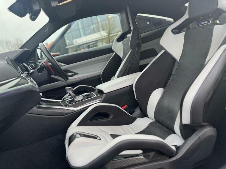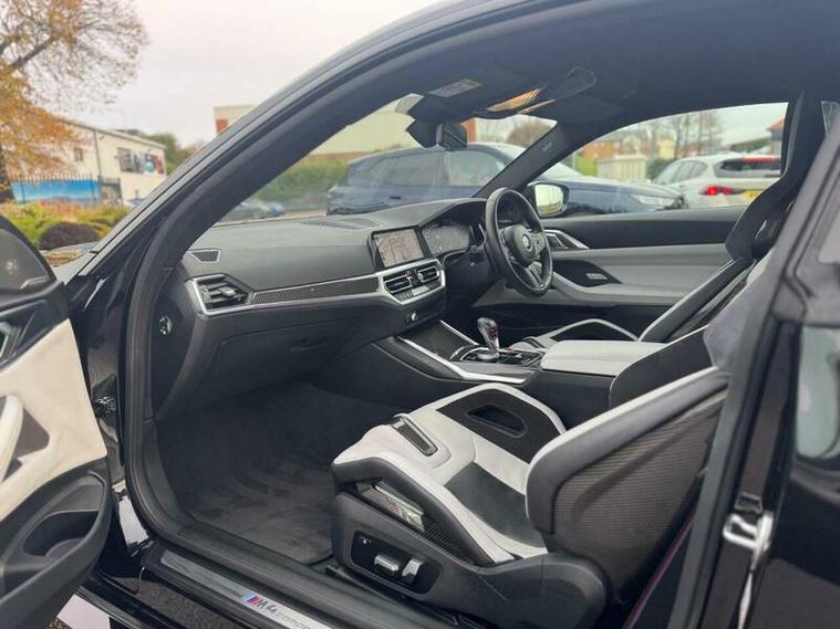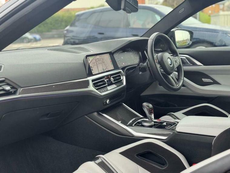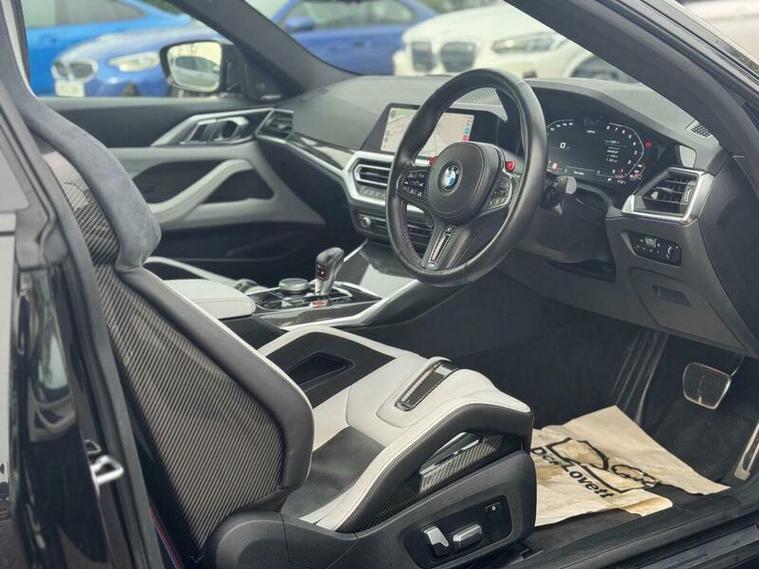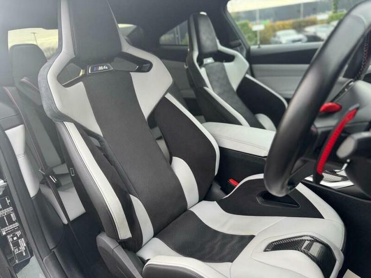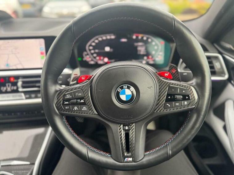 This M4 Competition is equipped with the desirable M Carbon Package, featuring M Carbon Bucket Seats with memory function, and an M Carbon Exterior Package that enhances its athletic stance. Inside, you'll find a heated steering wheel for added comfort, and the Technology Plus Pack which includes a Head Up Display, adaptive cruise control, and a 360 degree camera system for effortless parking. These features, combined with its low insurance group and generous boot space, clearly set this BMW M4 apart from other vehicles in its class.
