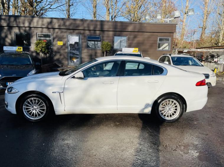 This is a Jaguar XF D 163 SE finished in White. Powering this model is the 163 SE diesel engine, paired with an automatic gearbox. A fabulous facelift model, with parking camera, sat nav, climate, cruise etc.