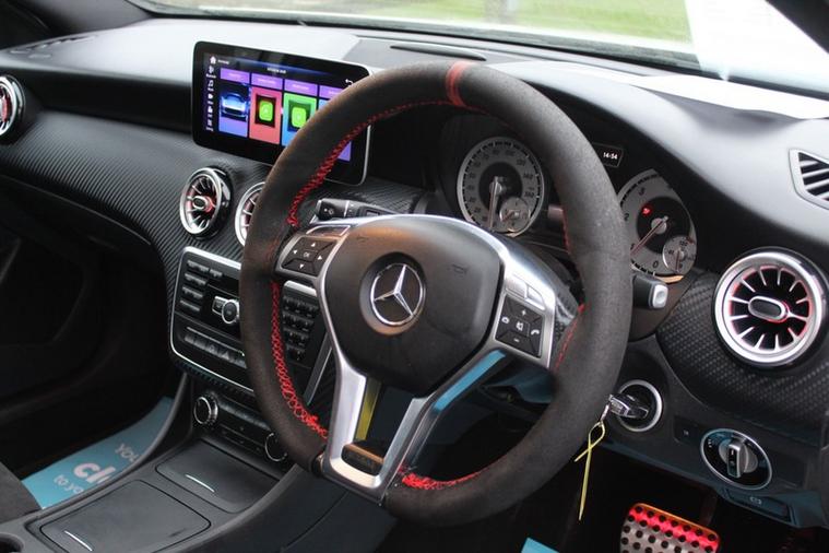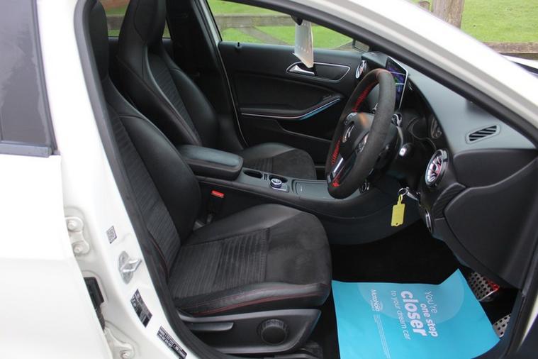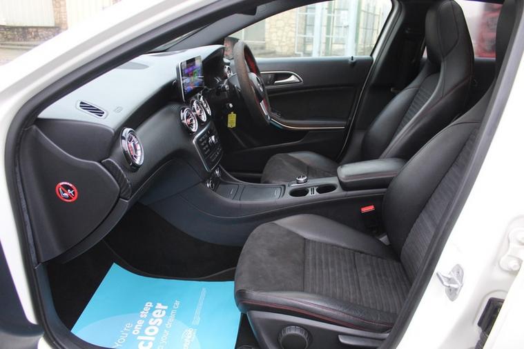 Here we have something you don't see everyday with this lovely locally owned Mercedes A220 CDI AMG Sport edition with only 45, 000 miles on the clock and finished in a stunning polar white with a aero body kit, two tone half leather interior and topped of by some stunning recently refurbished 18' gloss black AMG alloys.