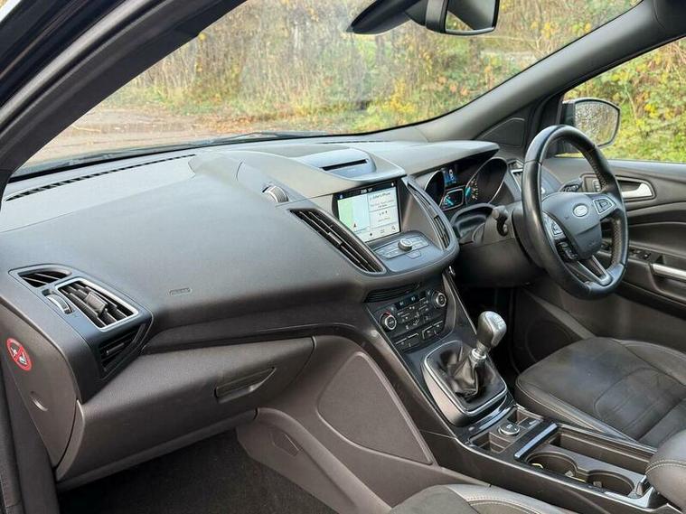 This 2017 Ford Kuga T ST-Line offers a compelling blend of sporty design and advanced technology. Powered by a 1.5 litre petrol engine and meeting Euro 6 emissions standards, this ST-Line trim model is equipped with the intuitive SYNC 3 system, featuring an 8 inch colour touchscreen with Bluetooth, voice control, a USB port, and emergency assistance. Navigating tight spaces is made effortless with the Enhanced Active Park Assist, which includes front and rear parking sensors. Comfort is assured thanks to the DEATC dual zone electronic automatic temperature control, allowing for individual climate settings.