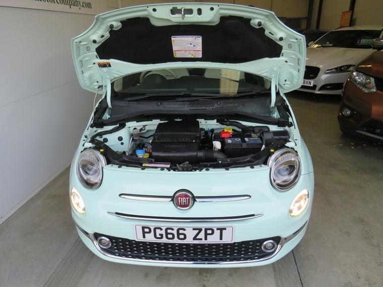 This 2017 Fiat 500 Lounge boasts exceptionally low mileage for its age, having covered just 18, 686 miles. This stylish city car is powered by an efficient 1.2L Petrol engine and meets Euro 6 emissions standards. It comes with a comprehensive full service history, with the last service completed at 18, 680 miles. For your peace of mind, a 12 month MOT will be provided on purchase, and the vehicle is offered with a 3 month warranty., , The Lounge trim level includes a fixed glass roof with a sunblind, offering a panoramic sunroof experience. Comfort is enhanced with air conditioning and front seats featuring a memory function. Parking is made easier with rear parking sensors, and the 5in touchscreen radio provides entertainment and connectivity options including AUX, USB, DAB, and Bluetooth. This Fiat 500 is also in a low insurance group and has low CO2 emissions, indicating it is more economical to run than many similar vehicles., 3 months warranty, 12 months MOT, Last serviced at 18, 680 miles, Full service history, Excellent bodywork, Part leather interior - Excellent Condition, Tyre condition Excellent, 4 seats, Green, 3 owners, Upgrades - Cloth - Black-Light Grey-Ivory with Ivory Ambience, Standard Features - Full Service History, Fixed Glass Roof with Sunblind, Rear Parking Sensors, Cruise Control, Air Conditioning, ESC - Electronic Stability Control, ABS with EBD, Electric Front Windows, Electrically Adjustable Painted Door Mirrors, Remote Central Locking, 15in Alloy Wheels, Fog Lights, 5in Touchscreen Radio with AUX - USB - DAB - Bluetooth, 7 Airbags, 12V Socket - Front, 50-50 Split Folding Rear Seat with Height Adjustable Head Restraints, Automatic Door Locking, Body Coloured Bumpers, Chrome Kit, Chrome Plated Exterior Door Handles, Dualdrive Power Steering, Fix and Go Puncture Repair Kit, Front Seats with Memory Function, Fuel Cap with Tap, GSI - Gear Shift Indicator, Hazard Light Automatic Activation During Emergency Braking, Heat Reflective Windows, Heated Rear Window, Height Adjustable Drivers Seat, Height Adjustable Front Head Restraints, ISOFIX Attachment Points for Child Safety Seat On Rear Seat, Instrument Panel with Rev Counter, LED Daytime Running Lights, Rear Window Wiper-Washer, Seats-back Pockets, Steering Wheel - Height Adjustment, Steering Wheel - Leather with Audio Controls, TPMS - Tyre Pressure Monitoring System, Trip Computer, Usual Dealer Facilities, AA Roadside Assistance, Warranties and Finance Available