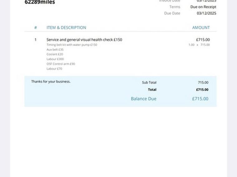 £715 spent on the last service.