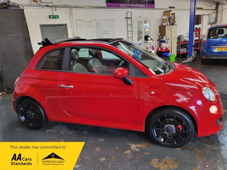 The 2014 Fiat 500C S TwinAir is a stylish, sporty and highly characterful convertible that brings Italian flair, fun driving dynamics and impressive efficiency in an open-top package. Powered by Fiat?s innovative 0.9 TwinAir turbo petrol engine producing 85 bhp, it delivers lively, responsive performance and a distinctive engine note that adds to its playful personality. Paired with a slick manual gearbox, the TwinAir engine allows the 500C to accelerate from 0?62 mph in around 11 seconds while offering fuel economy of up to 67 miles per gallon, thanks to its low-displacement, turbocharged efficiency. Its lightweight design and strong torque mean it feels eager around town, while remaining economical on longer journeys.The S trim enhances the 500C with a sportier and more distinctive appearance. On the outside, it features unique 16-inch sport alloy wheels, sporty bumpers, side skirts, chrome exhaust finish, darkened exterior detailing and S-badging. The electrically operated fabric convertible roof opens at the touch of a button and can be lowered fully or partially, making top-down motoring easy and enjoyable. Even when folded, the roof design retains the rear window frame, ensuring good visibility and excellent wind protection.Inside, the 500C S offers a surprisingly premium, sporty cabin with stylish detailing. Features include sports seats with contrasting stitching, a leather-trimmed steering wheel, aluminium pedals, air conditioning, electric windows, remote central locking and a trip computer. Fiat?s multimedia system with Bluetooth, AUX, USB connectivity and steering-mounted controls comes as standard, while optional upgrades include sport leather upholstery and parking sensors. The cabin is compact yet comfortable, with space for four passengers and thoughtful storage throughout.