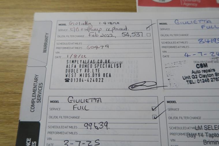 ** FRESH STOCK ** £797 OPTIONAL EXTRAS ** DONE 104K MILES + 2016 FACE-LIFT ( 66 REG ) ** TWO OWNERS FROM NEW ** FULL UP TO DATE SERVICE HISTORY ( 10 RECORS : 7 FROM ALFA ) ** WILL HAVE A SERVICE FROM US ** CAMBELT AND WATER PUMP HAS BEEN REPLACED @ ALFA @ YEAR 2022 ** VERY NICE LOOKING CAR IN SUPERB CONDITION INSIDE AND OUT ** 1.4 TB + 150 BHP + 51.4 MPG COMBINED + 165 TAX + ULEZ ** BEEN VERY WELL LOOKED AFTER ** ABSOLUTELY STUNNING ** GREAT GREAT VALUE ** DRIVES VERY WELL*** REAL QUALITY USED CAR *** All our hand picked cars come with a long MOT and full service history. This vehicle has been finished to a very high standard with a 120 points GOLD inspection , comes with 12 MONTH FREE AA BREAKDOWN COVER and 6 MONTH GOLD/Silver Plus AUTO PROTECT WARRANTY. Our professional friendly team will be very happy to assist you with any further information. UK delivery service could be arranged, 6 months warranty, Next MOT due 21/12/2026, Last serviced on 12/12/2025, Full service history, Good bodywork, Black Cloth interior - Good Condition, Tyre condition Good, 5 seats, ROSSO RED, 2 owners, Upgrades - 17in Alloy Wheels - Multi Spoke Design, Competizione Cloth - Black, 17in Alloy Wheels - Turbine Design, 17in Alloy Wheels - 5 Double Spoke Burnished, Chrome Window Surrounds, Dark Tinted Windows, Comfort Pack, Sports Leather - Black, Armrest - Rear with Storage, Seats - Passenger Height Adjustment, 17in Alloy Wheels - 5 Hole Design, Standard Features - 16in Alloy Wheels - 7 Hole Design, 6 Airbags - Driver-Passenger-Front Side and Window, 60-40 Split Folding Rear Seats, Airbags - Passenger Deactivation, Alfa Code Immobiliser and Alarm System, Alfa DNA Driving Mode Selector, Armrest - Front with Storage, Bluetooth Handsfree, Body Coloured Bumpers, Climate Control - Automatic Dual Zone, Cruise Control, DAB Radio, Daytime Running Lights - LED, Door Mirrors - Electrically Adjustable and Heated, Door Mirrors - Satin Effect Housing, EPS - Electric Power Assisted Steering, Electric Windows - Front and Rear, Electronic Key with Remote Central Locking and Boot Release, Electronic Q2 Differential, Floor Mats, Front Fog Lights, ISOFIX Attachments for Child Seat Protection, Leather Steering Wheel with Phone and Radio Controls, Matte Black Trim Inserts, Multifunctional Display and Trip Computer, Parking Sensors - Rear, Rear Cluster Lights - LED, Rear Spoiler, Safe Lock, Seats - Drivers Height Adjustment, Space Saver Spare Steel Wheel - 16in, Sports Dials with White Illumination, Storage - Front Seat Back Pockets, TPMS - Tyre Pressure Monitoring System, Uconnect 5in Colour Touchscreen Infotainment System, VDC - Vehicle Dynamic Control,