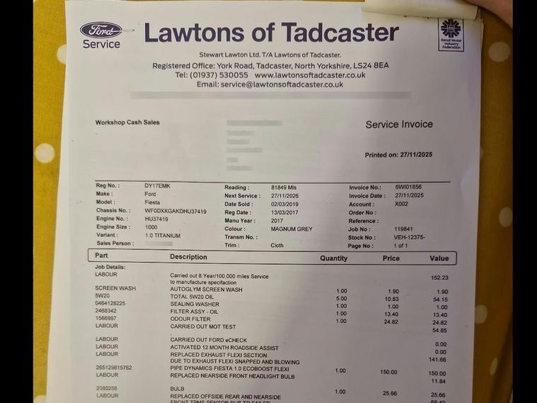 This car comes with 5 seats, Grey, 12V Power Socket - Front, 16in Alloy Wheels - 10 Spoke, 4.2in TFT Display, ABS - Anti-lock Braking System, Airbags - Curtain, Airbags - Driver Side Knee, Airbags - Front Passenger, Airbags - Front Side, Airbags - Passenger Deactivation, Ambient Lighting, Armrest - Centre Console, Automatic Dimming Rear View Mirror, Automatic Headlights - Rain Sensing Wipers - Auto Dimming Rear View Mirror, Automatic Rain Sensing Wipers, Bluetooth Hands-free Phone, Body Colour Exterior Mirrors, Bumpers - Front and Rear - Body Colour, Centre Console - with Trinket Tray - 2x Cup Holders - Illuminated, Chrome Belt Line Finisher, Courtesy Light - Front with Map Reading Lights, Courtesy Light - Overhead with Theatre-Style Dimming, Courtesy Light - Rear, Cruise Control, Door Handles - Body Colour, Door Mirrors - Power-Foldable with Puddle Lights, Door Mirrors with Integrated Indicators, Double Locking, Drivers Airbag, EATC - Electronic Automatic Temperature Control - Climate Control, EBA - Emergency Brake Assist, EBD - Electronic Brakeforce Distribution, ECOmode, EPAS - Electric Power Assisted Steering, ESP - Electronic Stability Programme, Electric Windows - Front with One Touch Opening and Closing, Emergency Assistance, Emergency Brake Warning - Automatic Hazard Warning Lights, Engine Immobiliser - Passive Anti-theft System, Floor Mats - Front and Rear - Velour, Footwell Lights - Driver and Passenger, Ford Easy Fuel Capless Refuelling System with Misfuel Inhibitor, Ford SYNC, Front Fog Lights - Chrome Bezel Rings, Front Lower Grille Insert - Black, Front Seat - Passengers Manual Fore-Aft Adjustment, Front Seatback Map Pockets - Driver and Passenger, Front Upper Grille - Chrome Finish Surround, Front Upper Grille Insert - Chrome bars, Gear Knob - Leather, Gear Shift Indicator, Glovebox - Illuminated, Head Restraints - 2-way Adjustment, Headlights - Automatic, Headlights - Courtesy Delay, Headlights - Halogen Projector with Silver Bezel, Headliner - Woven, Heated Front Windscreen, High-Mounted Rear Brake Light, Hill Start Assist, IPS - Intelligent Protection System, Interior Door Lever - Chrome Finish, LED Daytime Running Lights, Leather-Trimmed Handbrake, Loadspace Compartment Light, Loadspace Floor Carpet, Locking Wheel Nuts, MyKey, Perimeter Anti Theft Alarm, Pollen Filter, Rake and Reach Steering Adjustable, Rear Lights - LED, Rear Privacy Glass, Rear Seats Back - Carpet, Rear Spoiler - Body Colour, Rear Wash - Wipe, Remote Central Locking, Removable Package Tray, Seat Bolster - Metal Grey Stitching, Seats - 60-40 Split Folding Back and Fixed Cushion, Seats - Drivers Lumbar Support, Seats - Drivers Manual Height and Fore-Aft Adjustment, Seats - Front Comfort Style, Seats - ISOFIX Mounting Brackets for Child Seats, Sony CD-Radio Player-MP3 Compatibility, Sony DAB Digital Radio, Speakers - x8, Steering Wheel - 3 Spoke - Leather Trimmed, Steering Wheel - Multifunction, Suspension - Front Stabiliser Bar, Tailgate Handle - Body Colour with Chrome Finisher, Traction Control - TC, Trip Computer, Tyre Pressure Monitoring System, Tyre Repair Kit, USB and AUX Connection for External Music Devices, Voice Control - Audio,