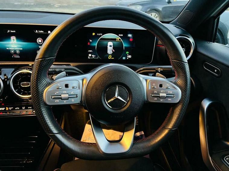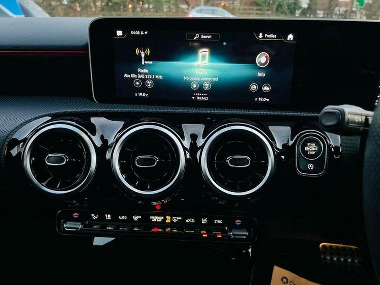 This 2019 Mercedes Benz A Class A180d AMG Line Executive offers a refined driving experience with its Euro 6 compliant 1.5 litre diesel engine. As an AMG Line model, it boasts a sporty aesthetic and comes equipped with the desirable Executive Package. This package includes front and rear parking sensors for effortless manoeuvring, and heated seats for added comfort during colder journeys. The interior is further enhanced by the THERMOTRONIC luxury automatic climate control, allowing for precise temperature management across two zones, all visible on a clear display. Connectivity is seamless with a dual Bluetooth interface and two USB Type C ports, ensuring all your devices can be linked and charged.