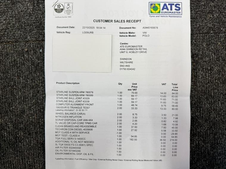 ABSOLUTE CARS have this 5 Door Volkswagen Polo 1.4 TDI Match in Metallic Blue with Alloys. Only £35 a Year Tax ! Call in for a test drive, finance arranged & part exchange considered., 1 month warranty, 12 months MOT, Last serviced on 22/10/2025 at 111, 354 miles, Part service history, Grey Cloth interior, 5 seats, Metallic Blue, 4 owners, Adjustable Steering Column/Wheel, Air Bag Driver, Air Bag Passenger, Air Bag Side, Air-Conditioning (Automatic), Alloy Wheels (15in), Anti-Lock Brakes, Body Coloured Bumpers, Central Door Locking, Centre Rear Seat Belt, Cup Holder, Electric Windows (Front), Front Fog Lights, Gear Knob Leather, Head Restraints, Heated Rear Screen, Immobiliser, In Car Entertainment (Radio/CD/MP3), Mirrors External, Power Socket, Power-Assisted Steering, Rear Wash/Wipe, Rev Counter, Seat - ISOFIX Anchorage Point, Seat Belt Pre-Tensioners, Seat Height Adjustment, Seats Split Rear, Side Protection Mouldings, Spare Wheel (Full Size Steel), Speakers, Steering Wheel Leather, Third Brake Light, Tinted Glass, Upholstery Cloth, AS WE ARE AN AA CARS DEALER THIS VEHICLE COMES WITH 12 MONTHS AA BREAKDOWN COVER.