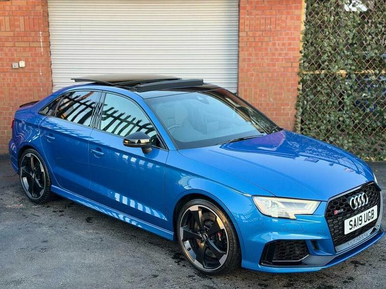 Low Rate Finance Available, 0% Deposit Finance Available, Vision Cars are Excited to offer this Stunning rare example of a Audi RS3 2.5 TFSI Audi Sport Edition S Tronic quattro finished in crystal ara blue metallic paired black super sport seats with black and carbon interior. ULEZ FREE! Covering ONLY 32K, it is backed with fantastic full main dealer service history. 0 Former Keepers! And 2 Keys. And benefits front a full front PPF and a full body ceramic coating.