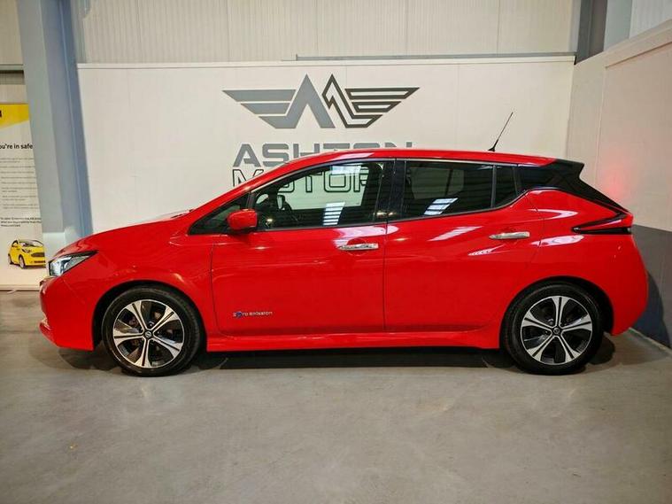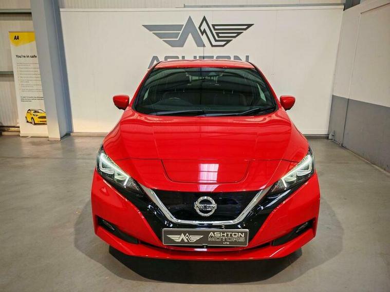 This 2018 Nissan Leaf Tekna boasts a full dealership service history and a clear vehicle history check, ensuring peace of mind for its next owner. As an electric vehicle with a 40 kWh battery, it offers a maximum range of 168 miles when new. Charging is convenient, with a full charge at home taking approximately 7 hours and 30 minutes using a 7kW charger, while rapid public charging can take it from empty to 80% in just 1 hour and 20 minutes. This Tekna model comes equipped with advanced features including an Around View Monitor with Moving Object Detector for enhanced parking assistance, Intelligent Cruise Control for adaptive driving, automatic headlights with a dusk sensor and full LED technology, and keyless entry with push button start.