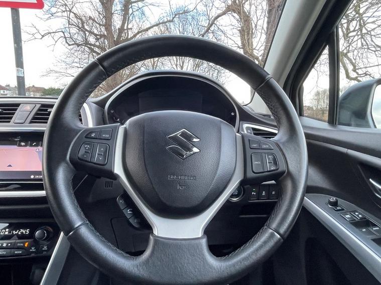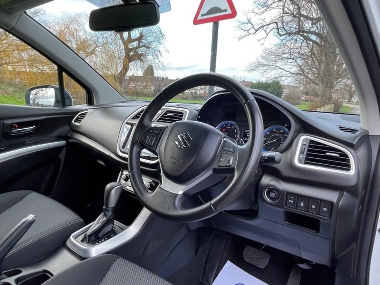 JUST SERVICED, NAVIGATION SYSTEM, DAB DIGITAL RADIO, PARKING CAMERA, BLUETOOTH, PARKING SENSORS, CLIMATE CONTROL, CRUISE CONTROL, This 2016 Suzuki SX4 S-Cross SZ-T boasts a clear vehicle history check, offering you peace of mind. This SZ-T variant is equipped with a 1.6 litre petrol engine and meets Euro 6 emissions standards. For enhanced driving convenience, it features gear shift paddles, front and rear parking sensors with parking assistance, and HID projector headlights with automatic activation.