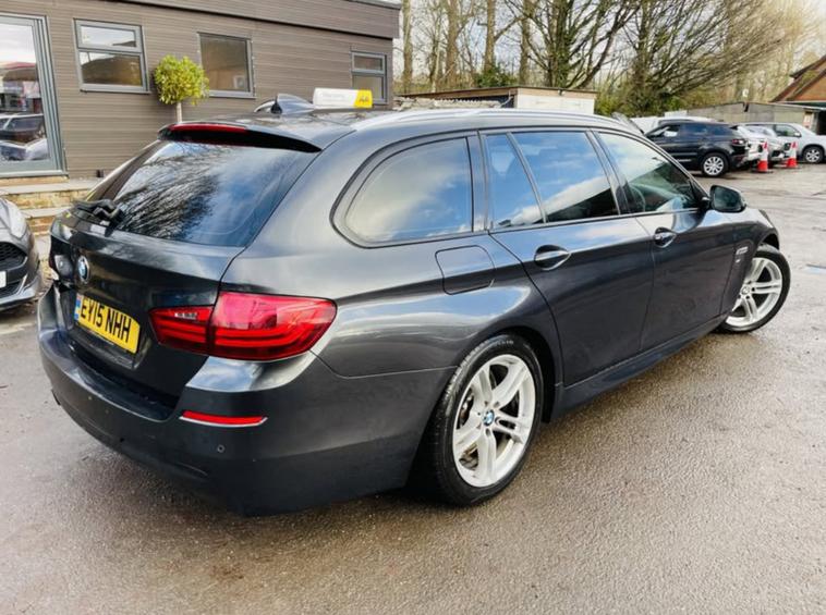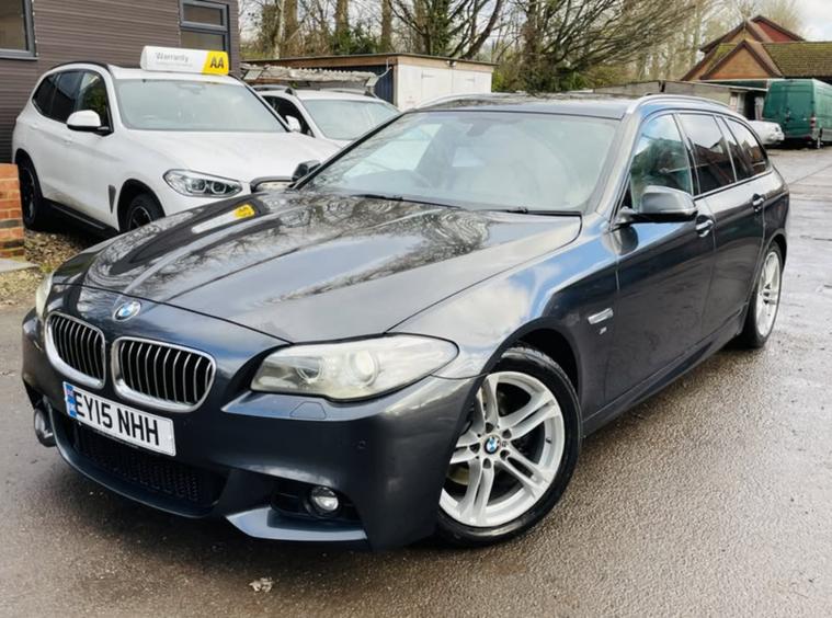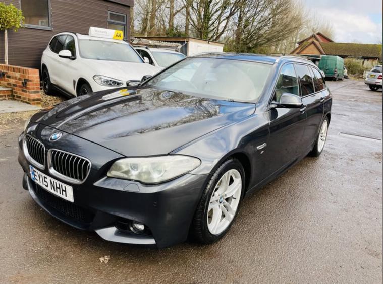 We are offering this 2015 BMW 520D M Sport Estate finished in Grey. This ULEZ compliant model is powered by the efficient 2.0L diesel engine paired with a smooth automatic gearbox, offering a balanced blend of performance and economy. This vehicle will be sold with a fresh 12-month MOT. V5 present and HPI clear.