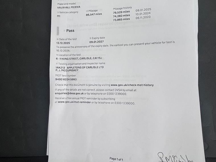We put a fresh 12 MONTH MoT on her (now done no advisories ) and service again now all in the price. No advisories on last MOT I don?t envisage any on this one either after having driven her. That said if there is anything needing sorting, we sort it.