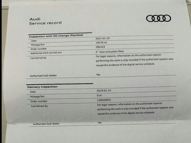 This car comes with 5 seats, White, 4 owners, 17in Alloy Wheels - 5-Arm Star Design, 2 x SDXC Card Readers, 3-Spoke Leather Trimmed Multi-Function Steering Wheel with Gear Shift Paddles, 6-Airbag System, 8 Passive Speakers, ABS - Anti-Lock Braking System, AMI - Audi Music Interface, Aluminium Interior Elements, Anti Theft Locking Wheel Bolts, Anti-Theft Alarm, Audi Connect Infotainment Services - 3 Month Trial, Audi Drive Select, Audi Pre-Sense Front with Pedestrian Recognition, Audi Smartphone Interface, Black Window Trims, Bluetooth Interface, Body Coloured Bumpers, Body Coloured Door Mirrors, C-Pillar Blade in Ice Silver - Metallic, CD Drive, Central Locking with Remote Control Key, Chrome-Plated Exhaust Tailpipe Trim, Connectivity Package, Contrast Bumpers in Manhattan Grey Paint Finish, Cruise Control, DAB Digital Radio, DIS - Drivers Information System - Monochrome, Door Mirrors - Electrically Adjustable and Heated with Integrated LED Side Indicators, Door Sill Trims with Aluminium Inlay, Dynamic Suspension, ESC - Electronic Stabilisation Control, Electric Windows - Front, Electromechanical Parking Brake, Extended and Proactive Pedestrian Protection, First Aid Kit and Warning Triangle, Front Centre Armrest, Front Sports Seats, Front Underbody Guard and Rear Diffuser Trim in Selenite Silver Finish, Front Windscreen with Grey Tinted Sunband, Front and Rear Floor Mats, Halogen Headlights, Headlining - Titanium Grey Cloth, Hill Hold Assist, ISOFIX Child Seat Mounting for Front Passenger with Airbag Deactivation and Outer Rear Seats, Inlays - Red Anodised Paint Finish, Interior Lighting, Light and Rain Sensor, MMI Navigation - SD Card Based, MMI Radio Plus with 7in Colour Fixed MMI Screen and MMI Controller, Manual Air Conditioning, Manual Seat Adjustment, Multi Collision Brake Assist, Non-Smoking Package, Power Operated Tailgate, Progressive Steering, Rear Parking Sensors, Seat Belt Monitoring, Split Folding Rear Seat Bench - 60-40 or Fully, Steering Wheel - Height and Reach Adjustable, Storage Compartments, Tool Kit, Tyre Pressure Warning Light, Tyre Repair Kit,