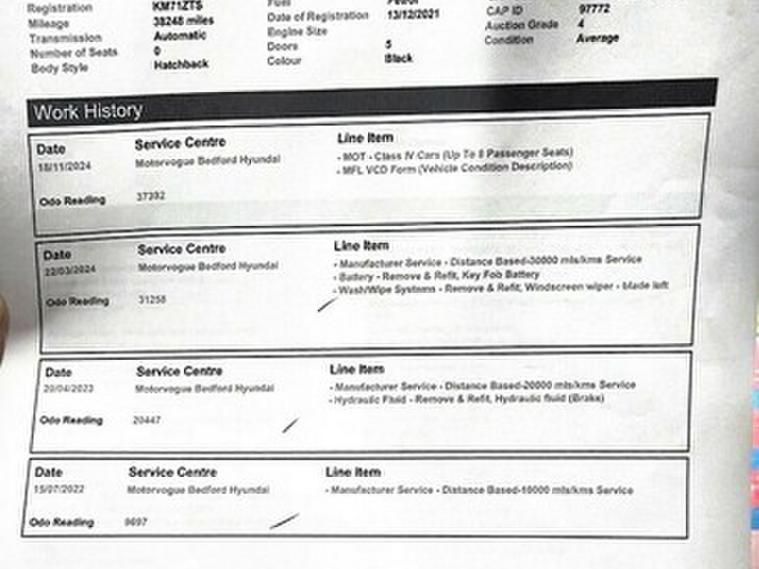 This car comes with 5 seats, Black, 2 owners, 12V Power Outlet - Front Console, 17in Alloy Wheels, ABS - Anti-Lock Brake System, Adjustable Head Restraints, Adjustable Intermittent Front Windscreen Wipers with Aero Wiper Blade, Airbag - Front Passenger Deactivation Switch, Airbags - Front - Front Side and Curtain Airbags, Armrest - Front with Storage, Automatic Dimming Rear View Mirror, Automatic Headlights with Dusk Sensor, Automatic Windscreen Wipers with Rain Sensor, Autonomous Emergency Braking - AEB, BlueLink, Bluetooth Connectivity with Voice Recognition, Branded Tyres - Continental, Bumpers - Body Coloured, Central Locking - Remote Control, Centre Console Display - 10.25in Touchscreen Satellite Navigation - Traffic Messaging Channel - Mapcare - LIVE Services, Childproof Rear Door Locks, Climate Control with Automatic De-Fog System for Front Windscreen, Cruise Control with Speed Limiter, Daytime Running Lights - LED, Deadlocks, Door Mirrors - Electric Adjustment and Heated with Power Folding Function, Door Mirrors with Integrated Indicators - Body Coloured, Drive Mode Select, Driver Attention Alert - DAA, Drivers Digital Supervision Instrument Cluster - 10.25in, Drivers Seat Height Adjustment - Manual, ESP - Electronic Stability Programme, ESS - Emergency Stop Signal, Electric Power Steering, Electric Windows - Front and Rear with Drivers Anti-Trap and One-Touch Up-Down Control, Exterior Door Handles - Body Coloured, Forward Collision Avoidance Assist with Pedestrian and Cycle Detection - FCA, Front Grille - Glossy Black, Front Map Reading Lights, Front Static Cornering Lights, HAC - Hill-Start Assist Control, Headlights - LED - MFR, Heated Front Seats, Heated Steering Wheel, High Beam Assist, ISOFIX Child Seat Anchorage Points - Rear, Immobiliser, Impact Sensing Auto Door Unlocking, Interior - Black Mono, Interior Door Handles - Satin Chrome Effect, Interior Light - Cabin and Luggage Compartment, Interior Mood Lighting - Blue, LED Rear Combination Lights, Lane Departure Warning System, Lane Keep Assist - LKA, Leather Wrapped Gear Knob, Leather Wrapped Steering Wheel, Locking Wheel Nuts, Luggage Board, Parking Sensors - Rear, Perimeter Alarm, Phone Connection - Android Auto, Phone Connection - Apple CarPlay, Privacy Glass - Rear Side Window and Tailgate, Radio - Digital DAB, Rear Spoiler with Integral LED Brake Light, Rear Wiper-Washer with Intermittent Function, Rear-View Parking Camera, Roof Rails, Seatbelt Pre-Tensioners - Front, Seatbelt Reminder - Front and Rear, Seatbelts - Height Adjustable Front, Seats - 60-40 Split Folding Rear, Shark Fin Antenna, Speakers - 2 Tweeters - 2 Front - 2 Rear, Speed Sensitive Automatic Door Locking, Steering Column - Height and Reach Adjustable, Steering Wheel Audio and Phone Controls, Sun Visors with Driver and Passenger Illuminated Vanity Mirrors, Tinted Windshield, Trip Computer, Tyre Pressure Monitoring System - TPMS, Tyre Repair Kit, USB and AUX Connections - Front, VSM - Vehicle Stability Management, Window Surround - Chrome Finish, Wireless Phone Charging Pad, eCall - Emergency Call Button,