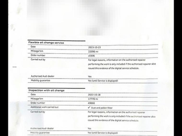 This car comes with 5 seats, Blue, 3 owners, 17in Alloy Wheels - 5-Arm Design, 2 x USB Charging Ports and 1 x AUX-IN, 6-Airbag System with Knee Airbag for Driver, 8 Passive Speakers, Aluminium Interior Elements, Aluminium Window Trims, Anti Theft Locking Wheel Bolts, Anti-Theft Alarm, Audi Connect, Audi Connect Infotainment Services - 3 Month Trial, Audi Drive Select, Audi Smartphone Interface, Auto-Dimming Rear-View Mirror with Light and Rain Sensor, Bluetooth Interface, Body Coloured Door Mirrors, CD Drive, Chrome-Plated Exhaust Tailpipe Trim, Cloth Headlining, Colour Drivers Information System - DIS, Cruise Control, DAB Digital Radio, Door Mirrors - Electrically Adjustable and Heated with Integrated LED Side Indicators, Door Sill Trims with Aluminium Inlay, Dual-Zone Electronic Climate Control, Dynamic Suspension, ESC - Electronic Stabilisation Control inc ABS - ASR and EDL, Electric Windows - Front and Rear, Electromechanical Parking Brake, Electromechanical Power Steering, First Aid Kit and Warning Triangle, Front Centre Armrest, Front Sport Seats, Front and Rear Floor Mats, Heated Windscreen Washer Jets, Hill Hold Assist, ISOFIX Child Seat Mounting and Top Tether, Inlays - Aluminium Mistral Silver, Interior Lighting, Lashing Points in Luggage Compartment, MMI Navigation - SD Card Based, MMI Radio Plus with 7in Electrically Retractable Colour MMI Screen, Manual Seat Adjustment, Model and Engine Technology Badges at Rear, Non-Smoking Package, Radiator Grille - Matt Black, Rear Parking Sensors, Remote Central Locking with 2 Fold Away Keys, Roof Spoiler - Painted in Body Colour with Aerodynamic Inserts in High-Gloss Black at the Side, Seat Belt Monitoring, Split Folding Rear Seat Bench - 60-40 or Fully, Sport Side Air Inlet Grille and Diffuser Insert, Steering Wheel - 3-Spoke Leather - Multi-function - Sports - Shift Paddles, Storage Compartments in the Door Side Trims-Centre Console-Under Drivers Seat, Storage Package, Tool Kit, Tyre Pressure Warning Light, Tyre Repair Kit, Voice Control System, Xenon Headlights with LED Daytime Running Lights,