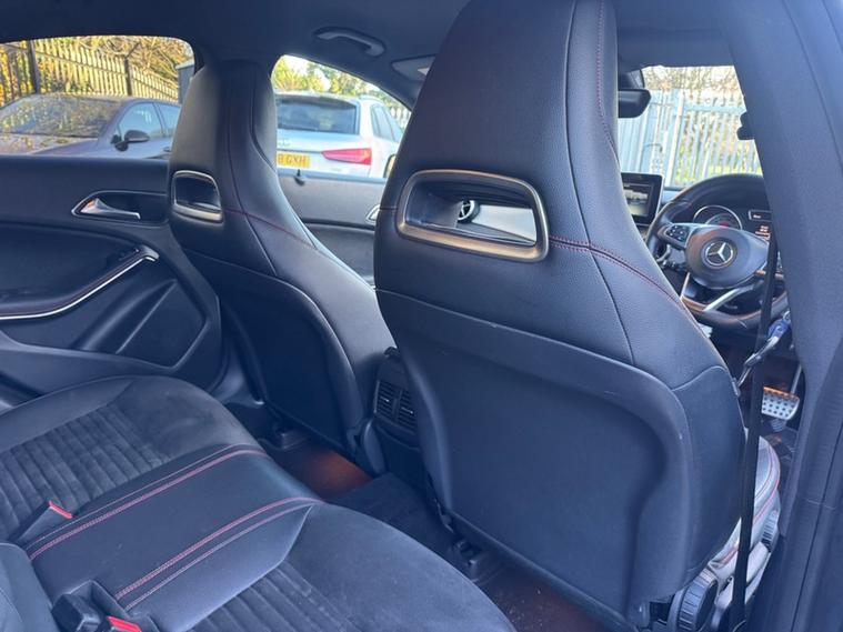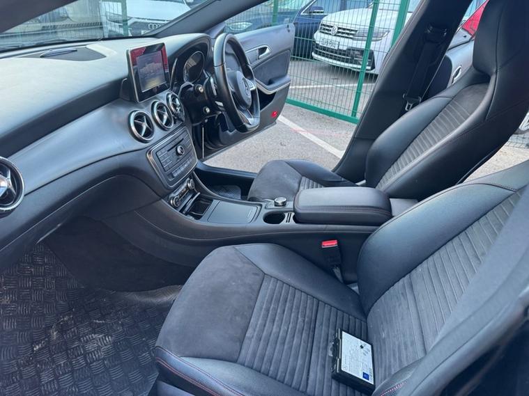 This 2015 Mercedes Benz CLA180 AMG Sport boasts a full dealership service history and a clear vehicle history check, offering peace of mind. This stylish coupe features the sought after AMG Exclusive Package with Lava Black leather upholstery detailed with striking red perforations. It sits on 18 inch AMG multi spoke alloy wheels finished in black, and includes a tyre pressure monitoring system for added safety. Inside, you'll find an 8 inch colour display and a practical rear armrest complete with twin cup holders and a through loading facility., , The CLA180 AMG Sport is powered by an efficient 1.6L petrol engine, meeting Euro 6 emissions standards. This model offers an impressive fuel economy of 53 miles per gallon, indicating lower running costs compared to many other vehicles. Furthermore, its low CO2 emissions and low insurance group rating further highlight its cost effectiveness and appeal to a wide range of drivers., 3 months warranty, Full dealership history, Clean bodywork, Interior - Clean Condition, Tyre condition Good, 5 seats, Black, 3 owners, Upgrades - 8-inch Colour Display, 18in Alloy Wheels - AMG Multi-Spoke Design in Black Finish, AMG Exclusive Package - Leather - Lava Black with Red Perforations, Rear Armrest with Twin Cup Holder and Through-Loading Facility, Rear Dividing Net, Standard Features - 18in Alloy Wheels - AMG 5-Twin-Spoke Design, 7in Tablet-Style Colour Display, ABS - Anti-Lock Braking System, AMG Bodystyling - Front and Rear Apron and Side Skirts, ASR - Acceleration Skid Control, ATTENTION Assist, Active Bonnet - Pedestrian Safety Measure which Detects an Impact and Raises Bonnet by 65mm, Active Park Assist, Adaptive Brake Assist with Hold Function and Hill Start Assist, Adaptive Brake Lights, Air Vents with Chrome Surround and Cruciform Nozzle, Airbag - Drivers Knee, Airbag - Dual-Stage - Front Passenger, Airbags - Dual-Stage - Driver, Airbags - Head for Driver and Front Passenger, Airbags - Windowbags for Driver and Front Passenger, Alarm System with Interior Protection, Audio 20 Radio-CD, Automatic Child Seat Recognition Sensor, Automatic Climate Control - Two-Zone, BAS - Brake Assist, Beltline Strips - Black, Bluetooth Interface, Brake Calipers - Mercedes-Benz Lettering on Front, Brake-Pad Wear Warning Indicator, Bumpers - Body-Coloured, Centre Armrest - Front with Storage, Childproof Locks - Manually Operated for Rear Doors and Electrically Operated for Rear Power Windows, Collision Prevention Assist Plus, Controller on Centre Console with Chrome Surround, Crash Sensor with Emergency Opening Function for Doors, Crash-Responsive Emergency Lighting, Cruise Control with SPEEDTRONIC Variable Speed Limiter, Cup Holder - Twin, Door Handles - Body-Coloured, Door Mirror Caps - Black, Door Mirrors - Electrically Adjustable and Heated, Door Mirrors - Integrated LED Indicators, ESP - Electronic Stability Programme, Electric Parking Brake, Electronic Key - Chrome Surround, Exhaust System - Twin-Pipe with Rectangular Tailpipes in Polished Stainless Steel, First Aid Kit, Floor Mats - AMG, Fluid Level Warning Indicator for Fuel - Oil - Coolant and Washer Fluid, Footwell Lights in Front, Gear Shift Trimmed in Leather, Glove Compartment - Illuminated, Headlight Assist - Automatic Headlight Activation, Headlight Wash, Headlights - Bi-Xenon, Headlights - Integrated Daytime Running Lights - LED, Heated Rear Window with Timer Control, High Level Third Brake Light - LED, ISOFIX and Top-Tether Child Seat Fixing Points in Rear - Two Outer Seats, Illuminated Reading Lights and Console Light in Rear Roof Lining, Illuminated Vanity Mirrors, Illumination - Storage Compartment, Illumination for Front Door Sills, Illumination for Headrests, Immobiliser, Indicators - Lane Change Function, Instrument Cluster with Four Analogue Dials and Needles Suspended in Six-O-Clock Position, Integrated Head Restraints, Light Failure Indicator, Light and Sight Package, Load-Securing Rings in Luggage Compartment, Luggage Compartment Cover, Media Interface, Mercedes Me Connect, Outside Temperature Gauge, Parking Sensor - Front, Parking Sensor - Rear, Power Steering - Speed-Sensitive Power Assistance and Variable Steering Ratio, Pre-Wiring for Garmin Map Pilot Navigation System, Privacy Glass, Radiator Grille - Diamond Grille with Pins in Chrome and Single High-gloss Painted Louvre with Chrome Inserts, Radio Aerial Roof Spoiler, Rain-Sensing Windscreen Wipers, Rear Fog Light, Rear Seats - Split Folding 1-3 - 2-3, Rear Tail Lights - LED, Remote Central Locking, Roof Lining - Black, Seat Belt Reminder - Front and Rear, Seat Comfort Package, Seat Occupancy Sensor - Front Passenger Seat, Seats - Cushion Angle Adjustment for Front, Seats - Front Manually Adjustable, Seats - Height Adjusters, Seats - Sports, Service Indicator ASSYST, Side Skirts - Body-Coloured, Sidebags for Driver and Front Passenger, Speakers x6, Sports Pedals with Rubber Studs, Steering Column - Manually Adjustable for Height and Reach, Steering Wheel - 3-Spoke Leather with Flattened Lower Section and Perforated Grip Area, Steering Wheel - Gear Shift Paddles, Steering Wheel - Multi-function, Steering Wheel - Red Stitching, Suspension - Lowered by 15mm, TIREFIT Tyre-Sealant Kit, Telephone Keypad, Trim - Light Aluminium with Longitudinal Grain, Trip Computer, Tyre Pressure Monitoring System, USB Port, Warning Triangle, Windows - Electric x4, eCall - Emergency Call System, PLEASE USE REGISTRATION NUMBER AS REFERENCE