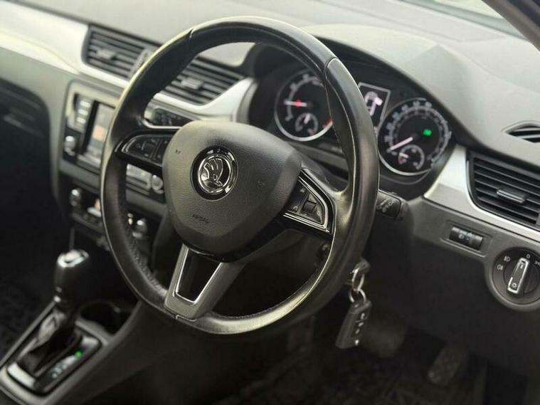 This 2017 Skoda Rapid Spaceback TSI SE Tech presents a superb ownership proposition with only two previous owners and a remarkably low mileage of 52, 387 miles for its age. This Euro 6 compliant 1.0 litre petrol model combines practicality with modern technology, featuring rear parking sensors with parking assistance, a Radio Swing system with Bluetooth connectivity, and the Amundsen touchscreen navigation system, also equipped with Bluetooth. Inside, you'll find climate control air conditioning, ensuring a comfortable journey in all conditions.
