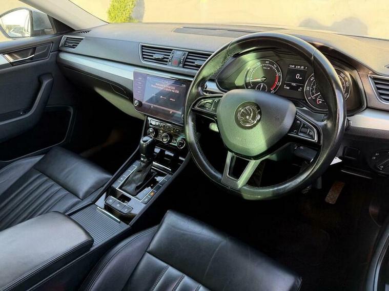 Shapo Wheels Limited presents the Skoda Superb 1.4 TSI ACT SE Technology DSG Euro 6 (s/s) 5dr + AUTOMATIC + PETROL + 5 DOOR + HPI CLEAR + FULL SERVICE HISTORY + LAST SERVICED IN DECEMBER 2025 + CAMBELT CHANGED IN 2023 + FRESH MOT + REVERSE CAMERA + APPLE CARPLAY + ANDROID AUTO + NAV + BLUETOOTH + FRONT & REAR PARKING SENSORS + LEATHER SEATS + AUTO LIGHTS + AUTO WIPERS + AUTO FOLDING MIRRORS + CRUISE CONTROL + ULEZ COMPLIANT + SPARE KEY PRESENT.
