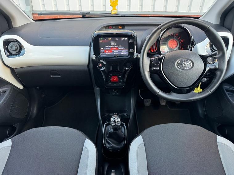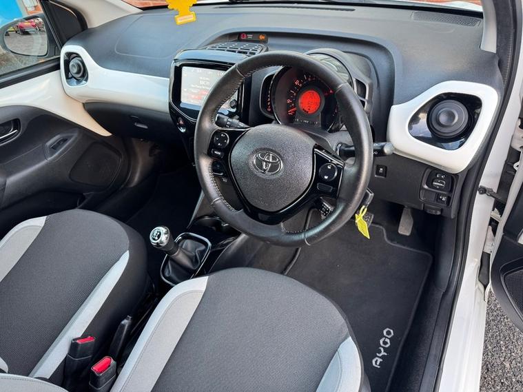 This 2017 Toyota AYGO VVT-i x-press presents a superb ownership proposition, having been cared for by only two owners. This stylish hatchback is powered by an efficient 1.0L petrol engine, meeting the Euro 6 emission standards. Inside, you'll find the convenient x-touch 7in multimedia touch screen, complete with Bluetooth connectivity and a reversing camera to aid with parking. Comfort is assured with automatic air conditioning, and the dusk sensing headlights provide added visibility and convenience.