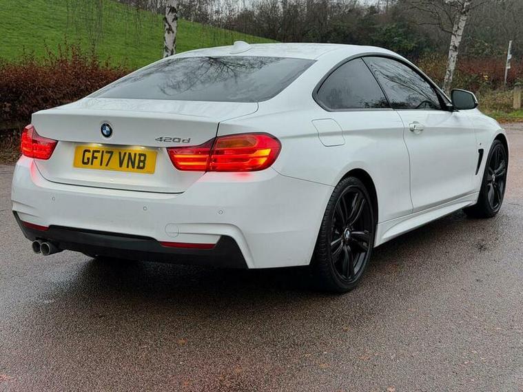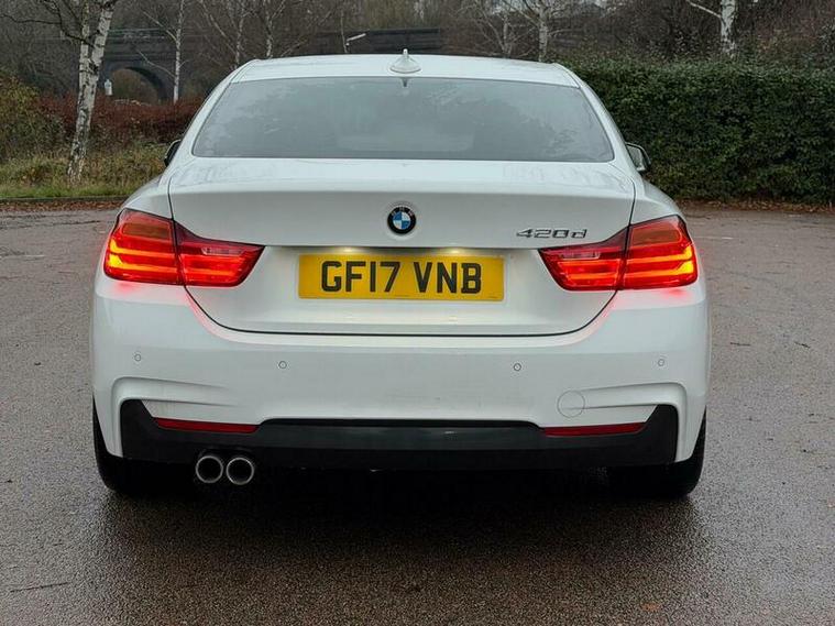 This 2017 BMW 4 Series 420d M Sport coupe presents an exceptional opportunity with its remarkably low mileage of just 55, 000 miles. Finished in the desirable M Sport trim, this Euro 6 compliant model boasts a powerful yet efficient 2.0L diesel engine. Inside, you'll find the M Sport Plus Package, enhancing the driving experience with features like the Loudspeaker System from Harman Kardon for premium audio, an armrest with sliding adjustment for added comfort, and automatically dimming folding door mirrors. The M Sport Braking System ensures confident stopping power, all contributing to the sporty and refined nature of this BMW.