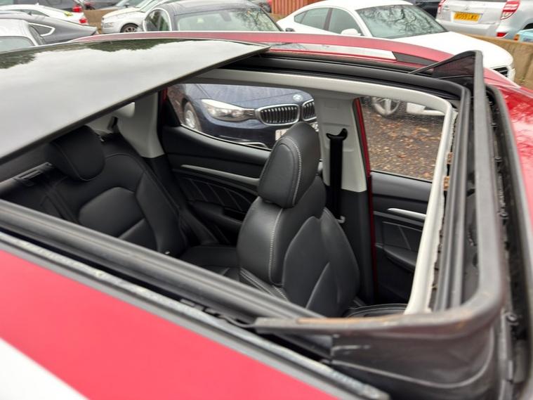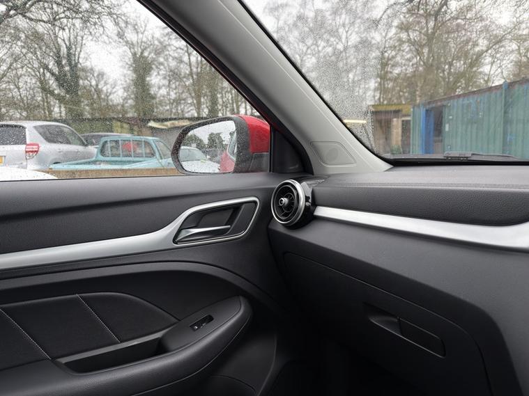Finished in the iconic MG shade of metallic DYNAMIC RED, this ZS is completed with its premium full BLACK LEATHER INTERIOR with white contrast stitching and brushed aluminium trim. This MG has an electric powertrain which offers an efficient way to travel with the desirable raised up driving position. Charging at home takes slightly over 7 hours using a 7kW charger. For quicker charging, a battery charge of 80% can be done in as little as 40 minutes. This MG is capable of charging at 50kW DC fast charging with a CCS port. The MOT is valid until 20/11/2026