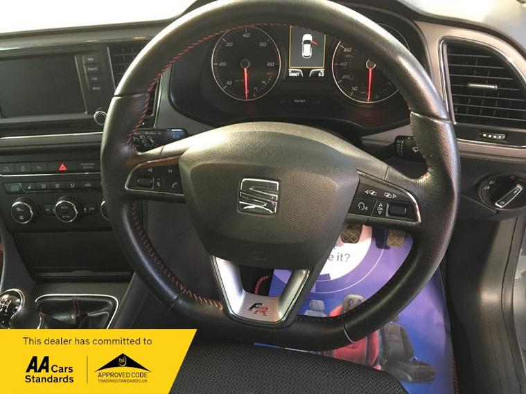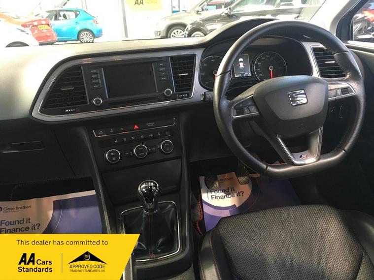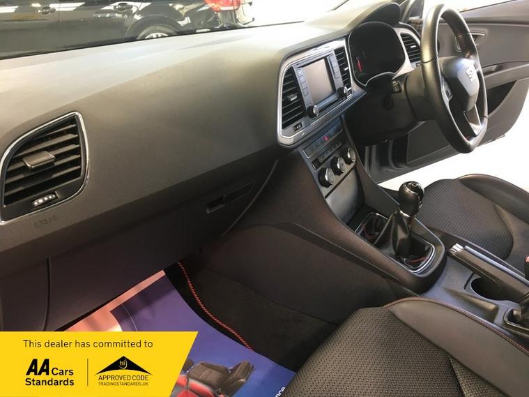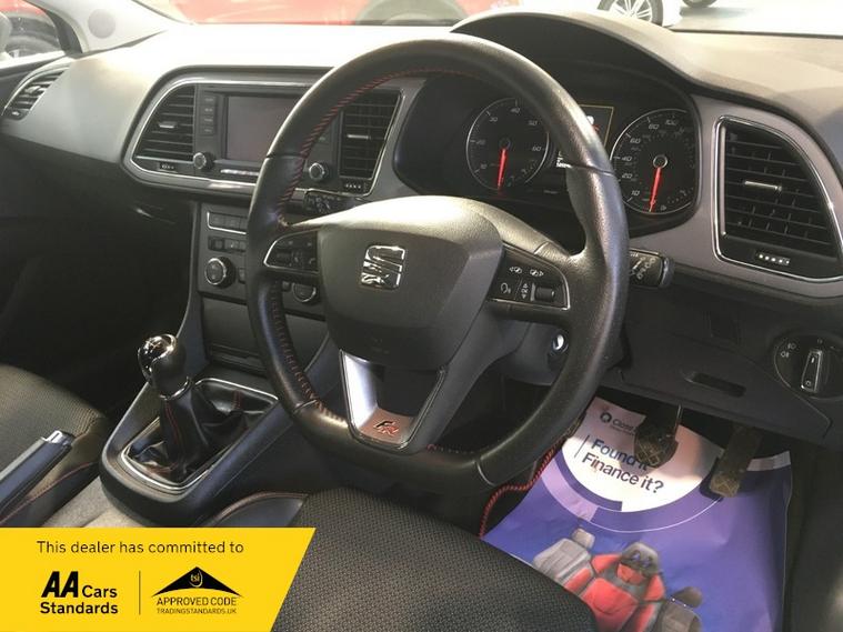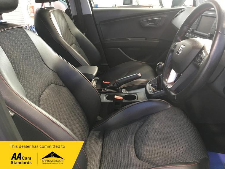THIS SEAT LEON FR 2.0 TDI 148 BHP IS FINISHED IN 'MONSOON GREY' AND HAS JUST 2 OWNERS FROM NEW. IT HAS BEEN METICULOUSLY MAINTAINED HAVING HAD 10 SEAT MAIN AGENT SERVICES AND IS IN EXCELLENT CONDITION INSIDE AND OUT. GENEROUS SPECIFICATION INCLUDES BLUETOOTH, SATELLITE NAVIGATION, HALF LEATHER INTERIOR, HEATED FRONT SEATS, PARKING SENSORS FRONT AND REAR, CRUISE CONTROL, PRIVACY GLASS, CLIMATE CONTROL, 6 SPEED GEARBOX AND 17' ALLOY WHEELS. LOW EMISSIONS MEANS IT IS ONLY £20 FOR A YEARS ROAD TAX. AS WITH ALL OUR CARS IT WILL COME WITH 12 MONTHS MOT, WITH NO ADVISORIES, WHEN SOLD.