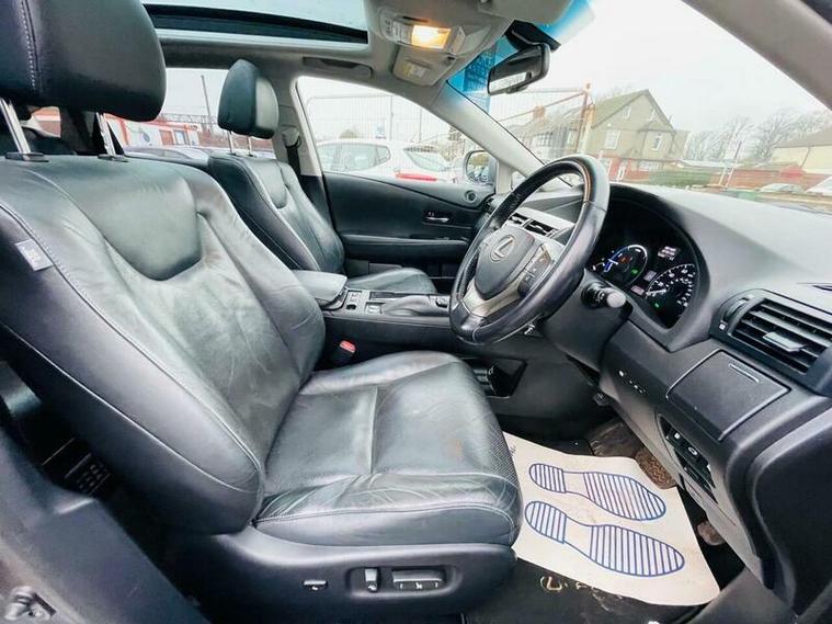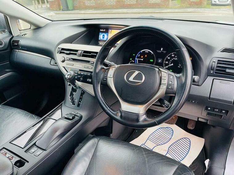 FULL MAIN DEALER LEXUS SERVICE HISTORY -- 2 KEYS --- RECENTLY SERVICED 53K -- PANORAMIC ROOF -- DRIVES VERY WELL -- This 2015 Lexus RX 450h Advance presents an exceptional opportunity with its remarkably low mileage of just 55, 800 miles. This Four Wheel Drive model boasts a powerful 3.5L Petrol Hybrid engine, offering a smooth and efficient driving experience. The Advance trim level ensures a premium feel, complemented by desirable features such as dual zone climate control with a pollen filter, front and rear parking sensors for effortless manoeuvring, and striking LED headlights. Enjoy an open and airy cabin thanks to the fixed panoramic sunroof, adding to the overall sense of space and luxury.