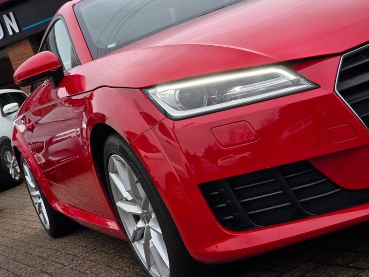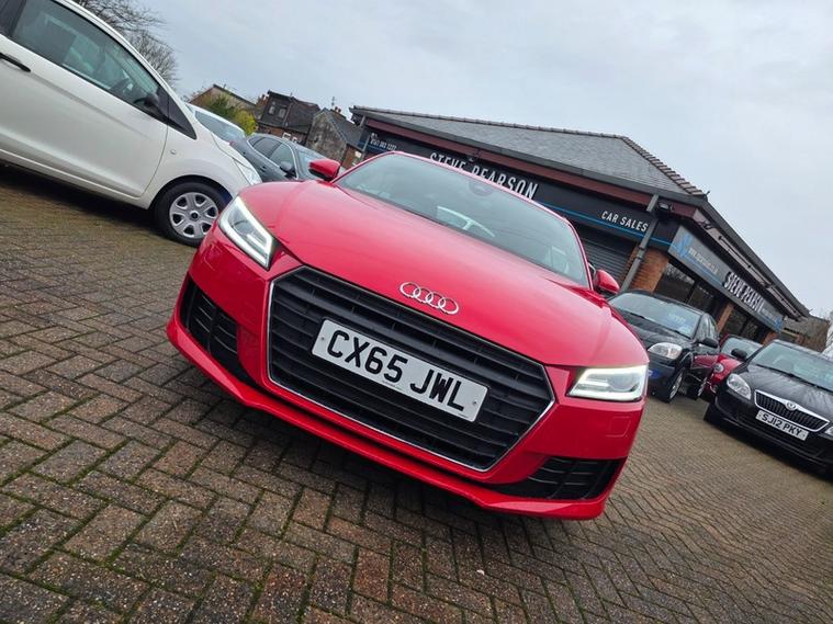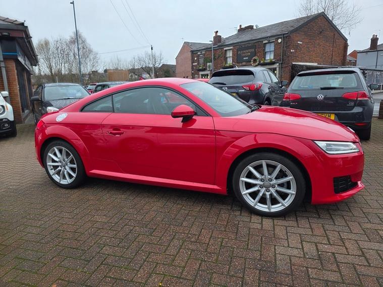 Steve Pearson Car Sales are Pleased to Present this Stunning Audi TT 2.0 TFSI Sport in Red. Only One Former Keeper with Full Main Dealer Service History. All usual Audi refinements include.. .. 226 BHP, 6 Speed gearbox, ABS, Air conditioning, alloy wheels, central locking, electric windows/mirrors, power steering, adjustable steering, 12v power socket, virtual cockpit, bluetooth, body coloured bumpers, brake assist, cup holders, daytime running lights, engine immobiliser, front airbags, heated rear windshield, hill start assist, keyless door locks, start button ignition, MP3, DAB Radio, parking sensors, side impact airbags, speakers, stop start system, steering wheel controls, traction control etc..... Looks and Drives Superb. A real Head Turner. .Car comes with 2 keys, professionally valeted and fully HPI checked. We welcome Part Exchange and can offer Great Finance Deals, Please take a look at our TESTIMONIALS On our Website and Buy In confidence from a long Established Family Firm at dealer's website where we have over 60 cars in stock, for more information please telephone or pop in for a cup of tea! Our showroom and floodlit forecourt are open 7 days a week, , Tameside's Finest Collection of Low Mileage Quality Cars