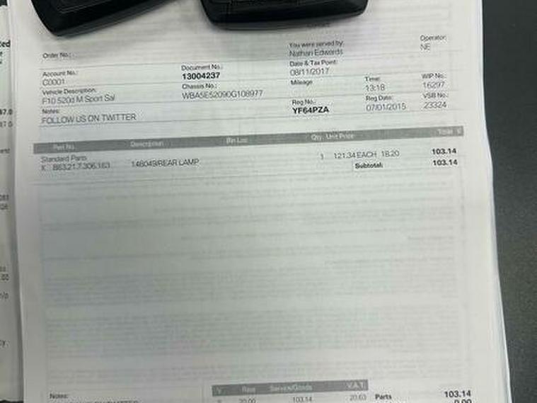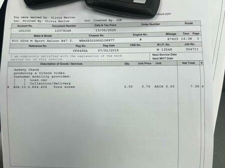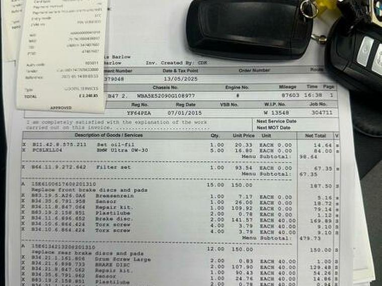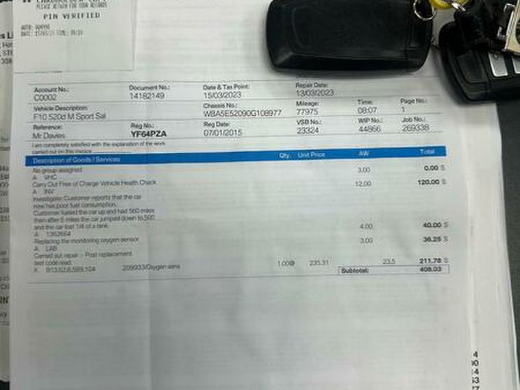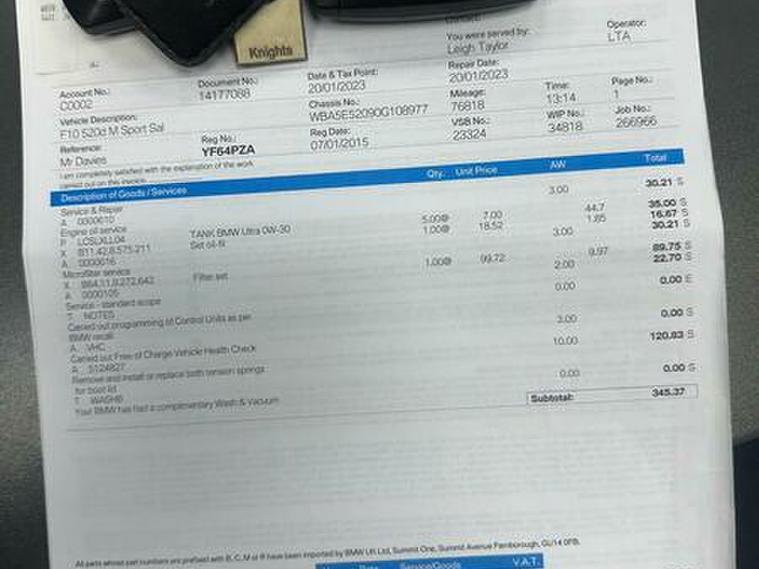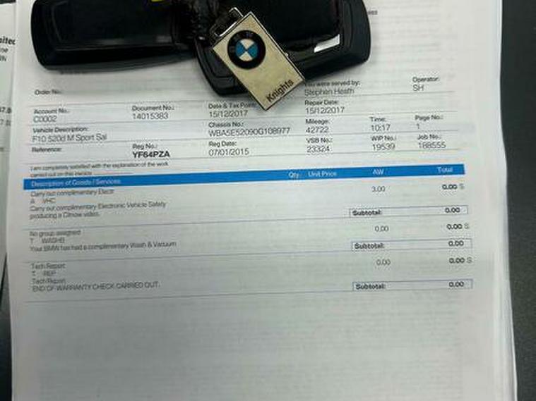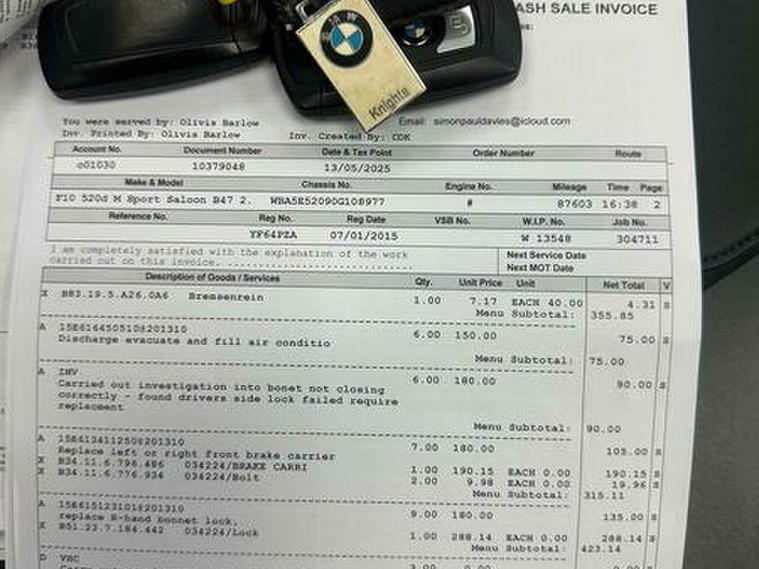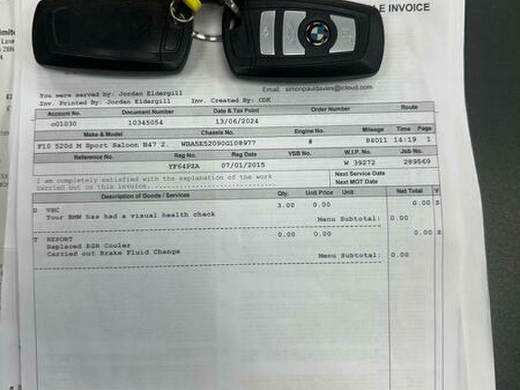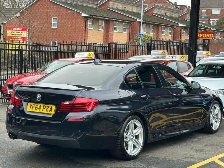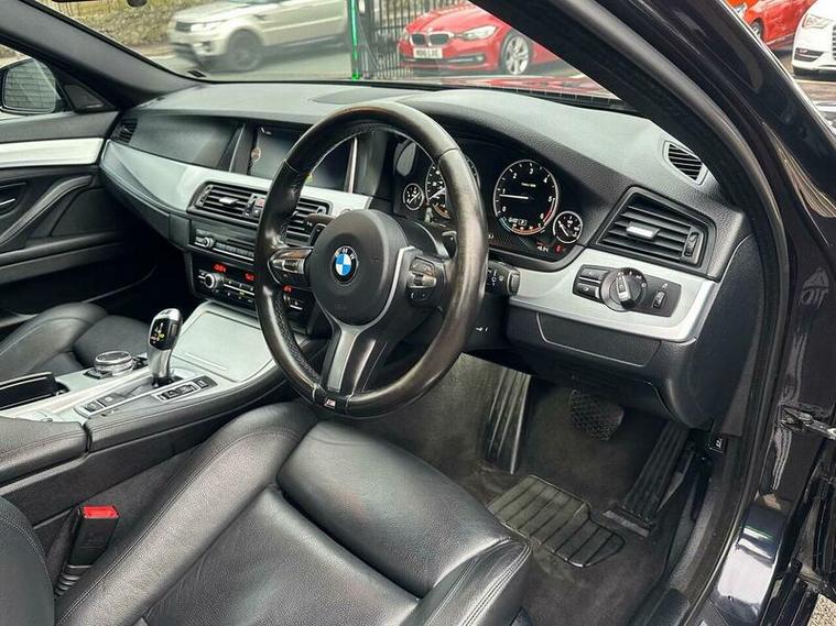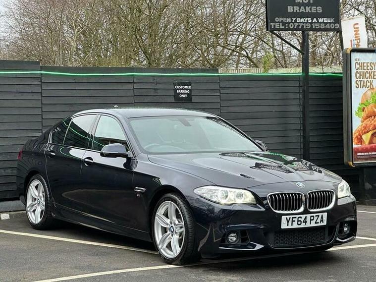 Basford Motors LTD delighted to offer this stunning BMW 5 Series 2.0 520d M Sport Auto Euro 6 (s/s) 4dr in immaculate condition, This 2015 BMW 5 Series 520d M Sport stands out with its full dealership BMW service history, with the last service completed on 2025-12-19 at 89, 977 miles also had all around brake pads and discs at 87603 miles spent £2240 please see the photos , A remarkably low mileage of just 89, 000 miles for its age. This Euro 6 compliant model, featuring a 2.0L diesel engine and an automatic transmission with gearshift paddles, has had only two owners. It comes equipped with the M Sport trim and a Media Package including BMW Professional, a Harman Kardon speaker system, enhanced Bluetooth telephone preparation with USB audio and voice control, and Concierge Service. A 12 month MOT will be provided on purchase, along with a 3 month warranty for your peace of mind.All original manual books and 2 keys available