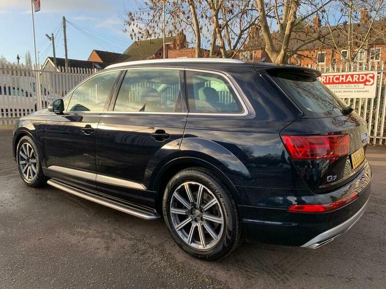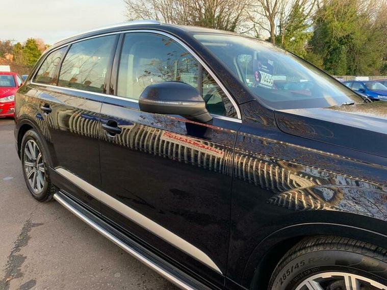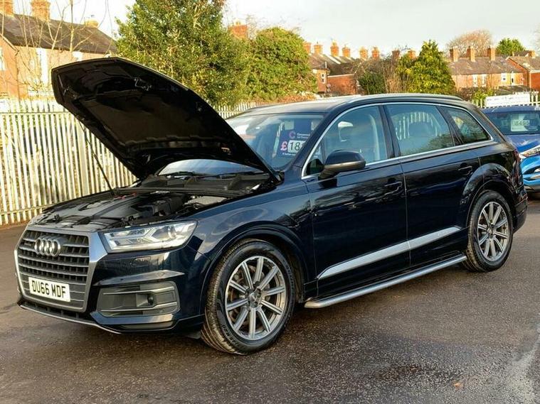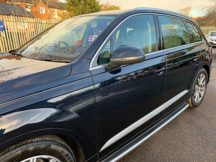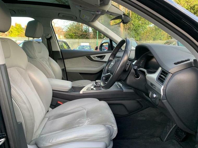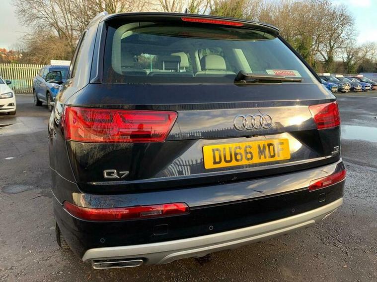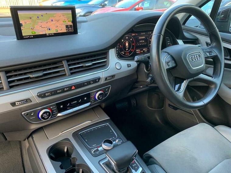 This Audi Q7 TDI V6 SE from 2016 presents a remarkable ownership history, boasting a single owner since new and a clear vehicle history check and Audi service history. With only 78, 522 miles on the clock, it is notably low mileage for its age. This Euro 6 compliant, four wheel drive model features a powerful 3.0 litre diesel engine and offers seating for seven, making it a versatile choice. It comes with a 3 month warranty for your peace of mind, and its MOT is valid until September 2026. The Q7 is supplied with Audi service history and the last service was completed on 20th June 2024 at 65, 279 miles. Notable features include adjustable air suspension, panoramic glass sunroof, a head up display, a comfort package, a rear view camera for easier parking, and a premium BOSE 3D sound system.