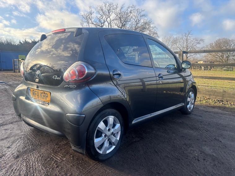 This 2011 Toyota AYGO VVT-i Go presents a superb ownership opportunity with only two previous owners and a clear vehicle history check. This well maintained 1.0 litre petrol model has covered a modest 72, 700 miles for its age. Inside, you will find comfort thanks to the Air Conditioning and a Pollen Filter, ensuring a pleasant environment whatever the weather., , The AYGO VVT-i Go is designed to be economical to run, boasting an impressive fuel economy of 61 miles per gallon. This figure, along with its low CO2 emissions and placement in a low insurance group, indicates that this vehicle is a more cost effective choice compared to many others in its class., 3 months warranty, Next MOT due 15/12/2026, Last serviced on 15/12/2025, Full service history, Excellent bodywork, Interior - Excellent Condition, Tyre condition Excellent, Grey, 2 owners, £4, 195